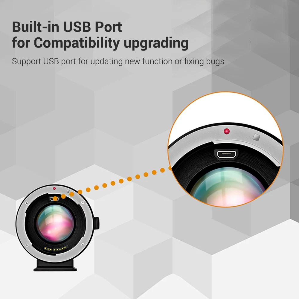 1. Der Objektivhalterungsadapter ist mit einem USB-Firmware-Upgrade-Anschluss ausgestattet. Informationen zur Aktualisierung finden Sie zunächst auf der Commlite-Website www.commlite.com.