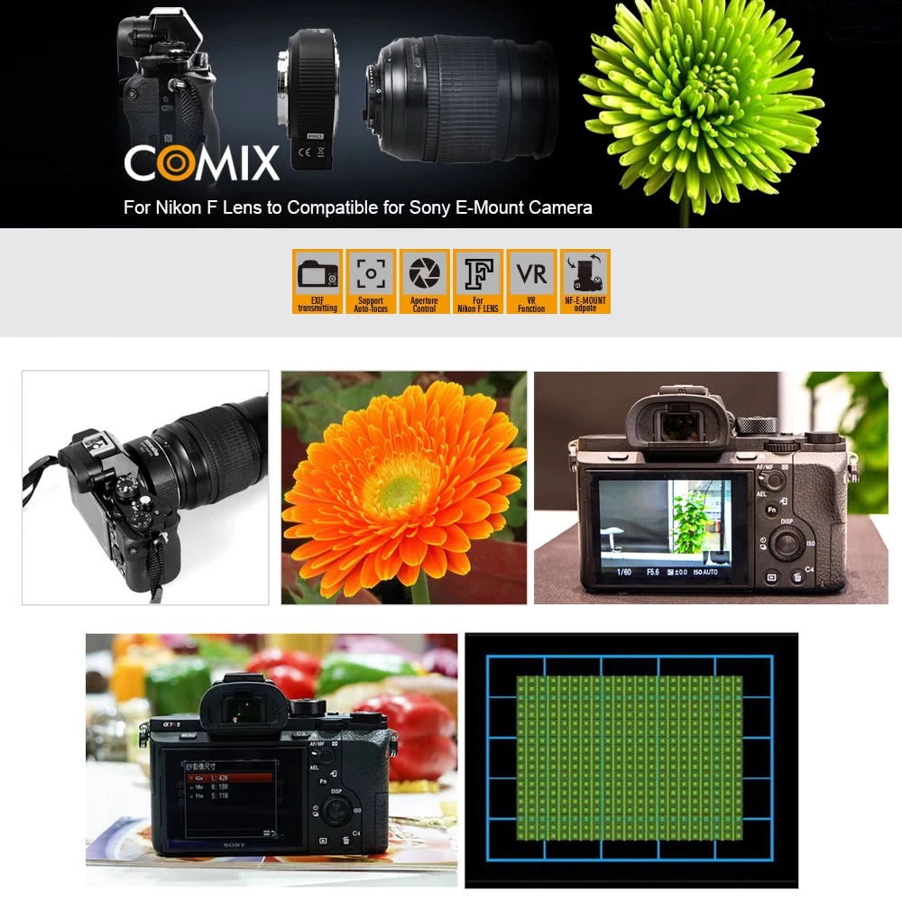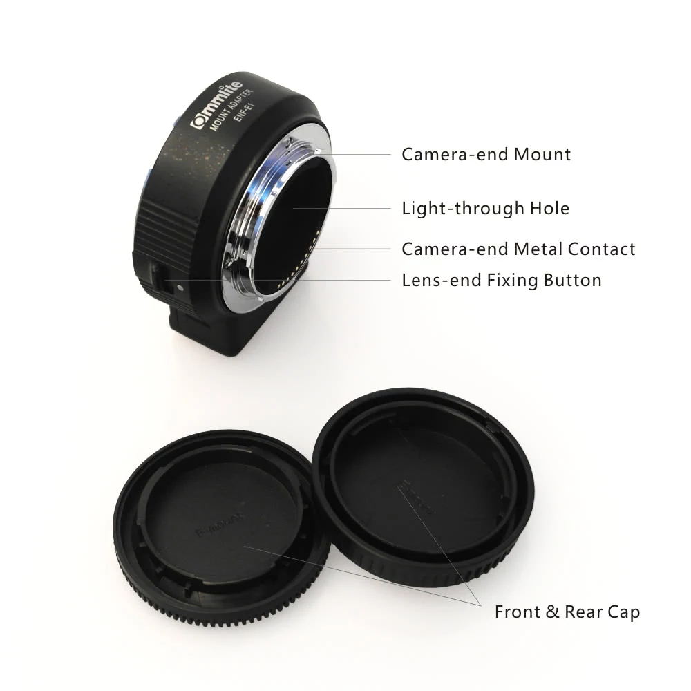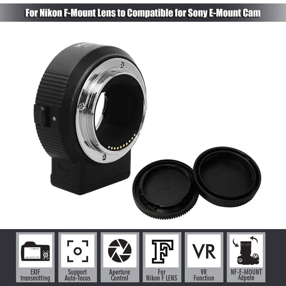 Commlite ENF-E1 Objektivadapter ist für Nikon F-Mount Objektive geeignet und kompatibel mit Sony E-Mount Kameras und Camcordern. Es kann AF-Funktion, Blendensteuerung, IS-Funktion erreichen und ist mit Teleconverter-Objektiv kompatibel und bringt Sie zu einer neuen fotografischen Welt!