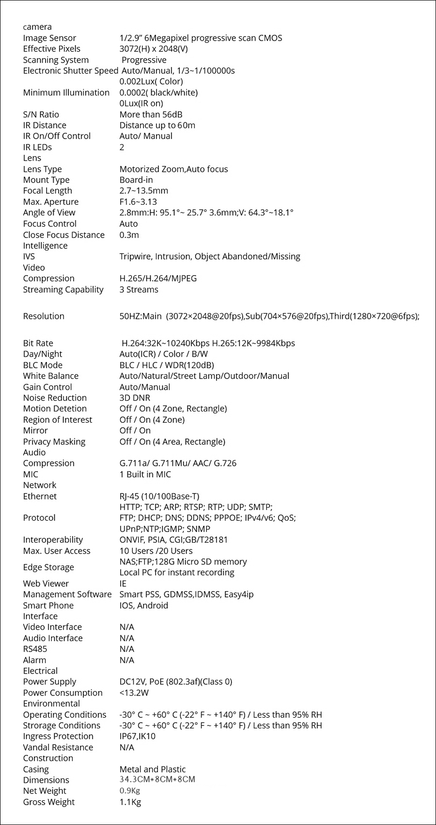 1. 6MP Nacht VF Objektiv IP Kamera IPC-HFW4631H-ZSA * 1