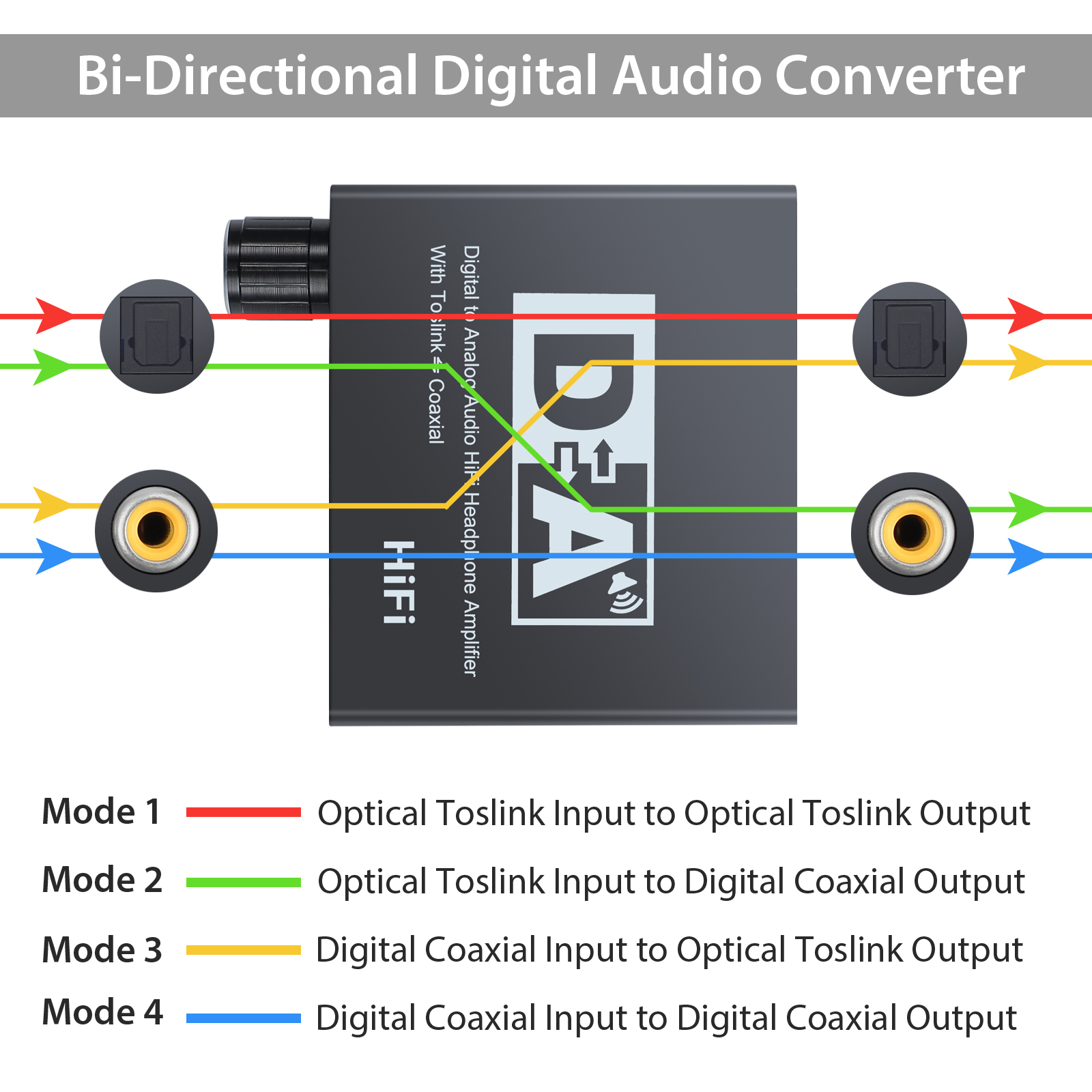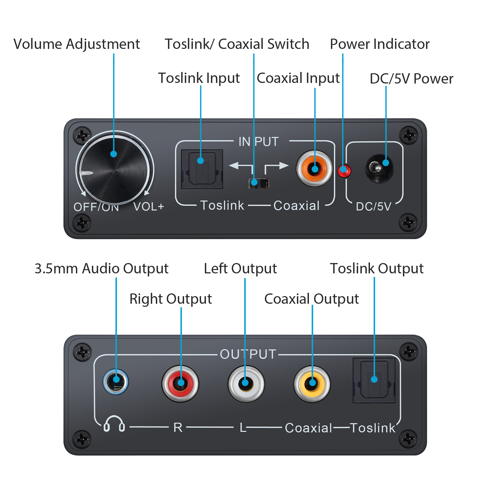 Diese Digital zu Analog Audiokonverter ist für Heim- oder professionelle Audio-Umschaltung konzipiert. Es wandelt Koaxial oder Toslink digital Audio Signale an analogen L/R Audio und kann an externe Geräte wie Verstärker über einen standard-RCA-Typ-Buchse angeschlossen werden. Sie können auch Ausgang 3,5 mm Kopfhöreranschluss, HiFi-Kopfhörer anschließen. HiFi-Verstärker-Chips, Kopfhörer und RCA-Ausgang Anschluss 16-300 Ohm HiFi-Kopfhörer leicht schieben kann. Produkt Support ausschalten, die Volumen-Größenanpassung, mehr Anpassungsfähigkeit an verschiedene Quellen verschiedene Umgebungen.