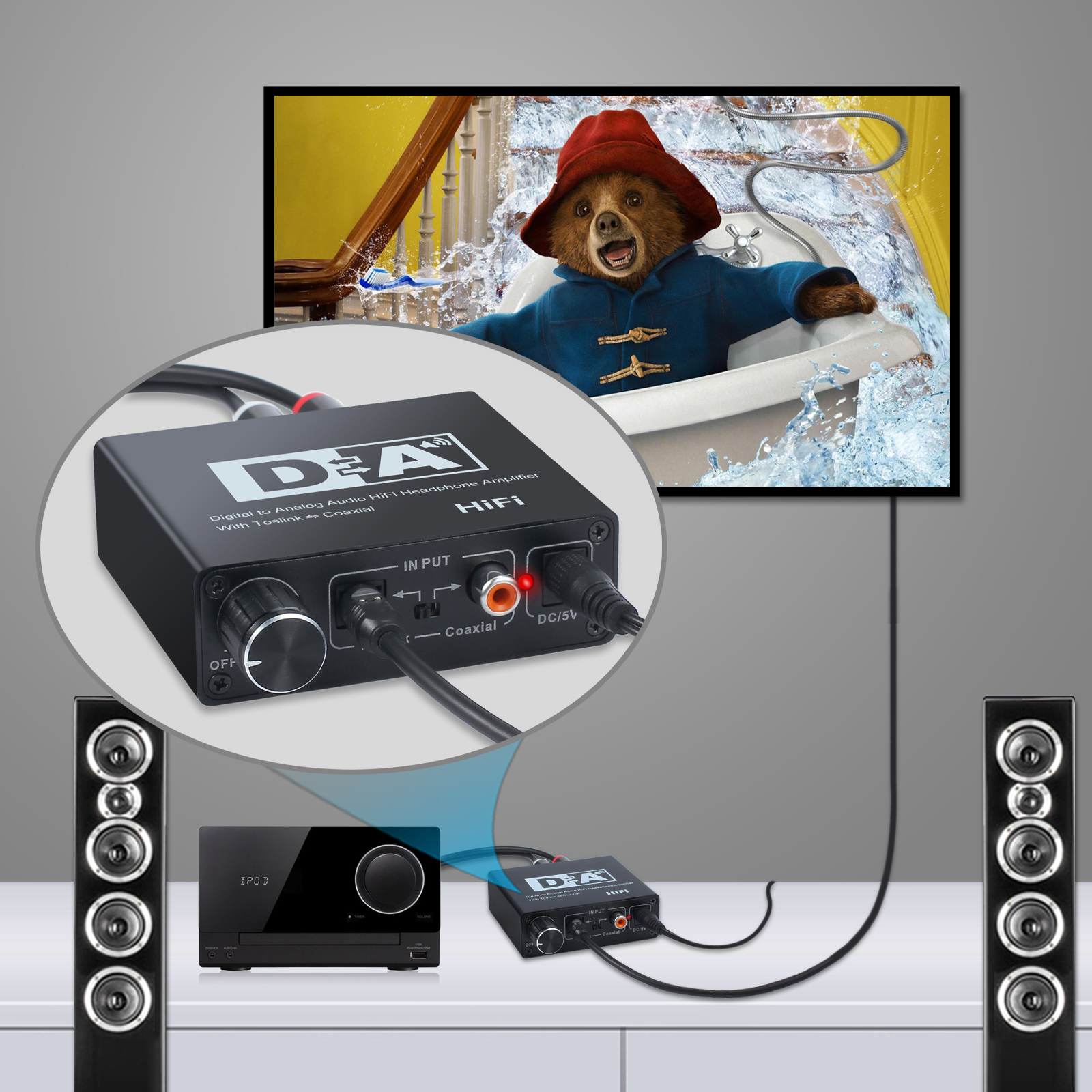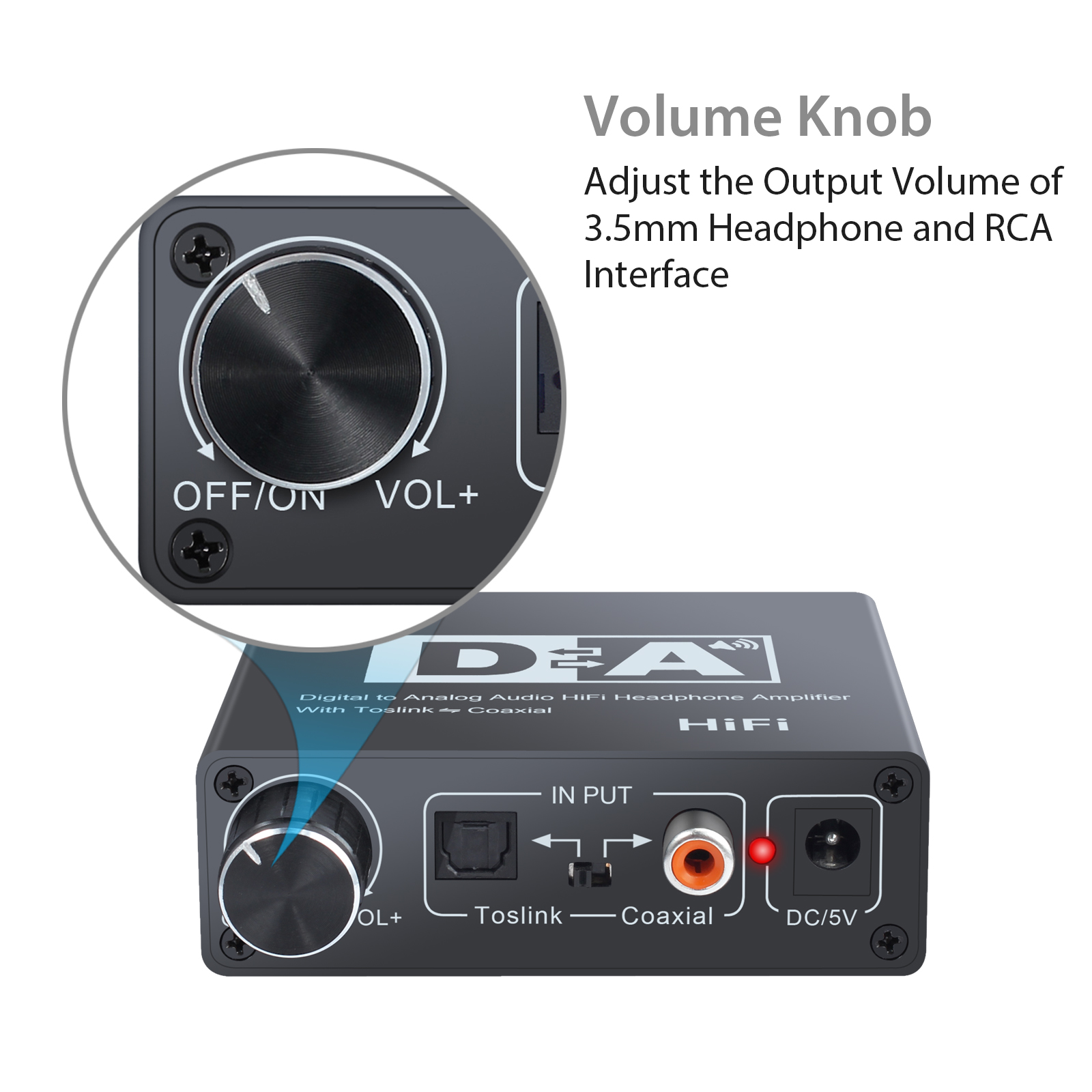 Es gibt ein Netzschalter auf der Volume-Regler, wenden Sie sich an den Ein-/Ausschalter vor der Verwendung der DAC.