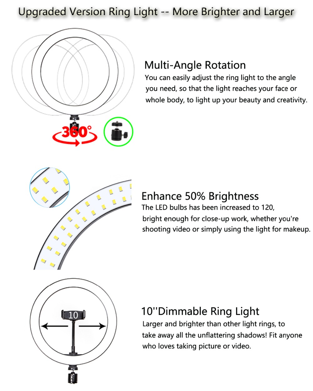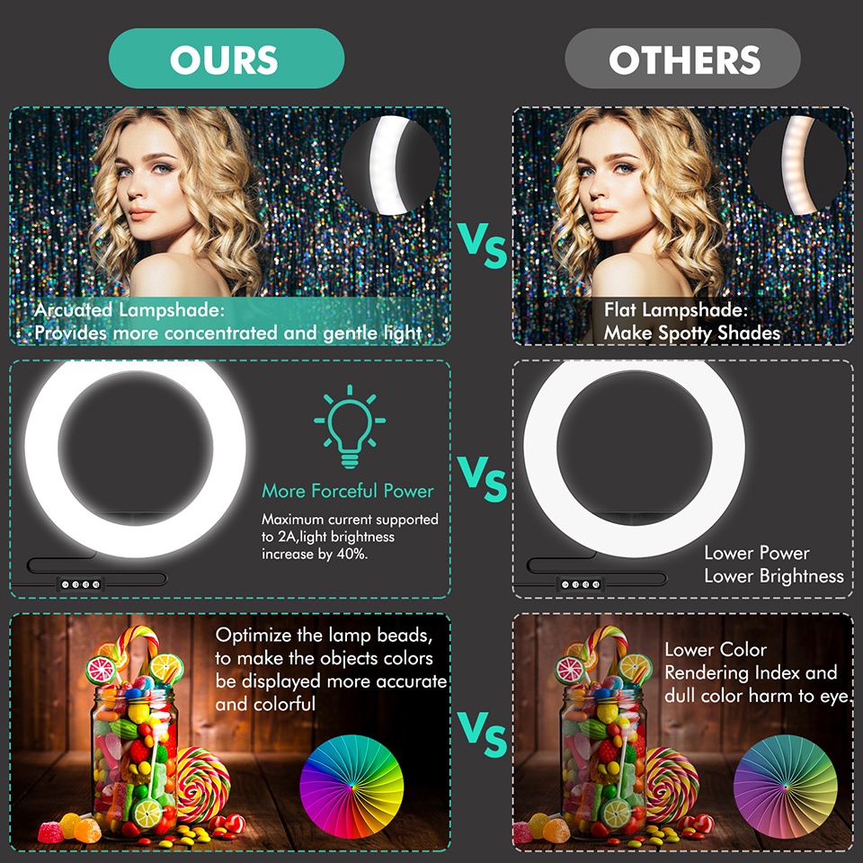 â–º Verwendung in mehreren Szenen: Kann für Self-Timer-Schönheit, Webcast wie Youtube, Make-up-Modellierungsunterricht, Live-Unterricht, Hochzeitsfotografie-Fülllicht, Tattoo-Nagel-Fülllicht, Friseur-Studio-Fülllicht, Produktfoto-Fülllicht und für alle geeignet sein müssen das Licht der Umwelt füllen.