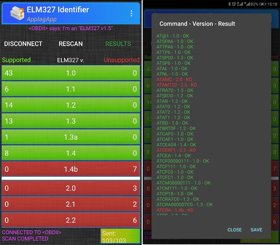 * Mit Chip: PIC18F25K80, unterstützt alle elm327-Funktionen, in der Programm-ELM327-Kennung werden alle Funktionen angezeigt.