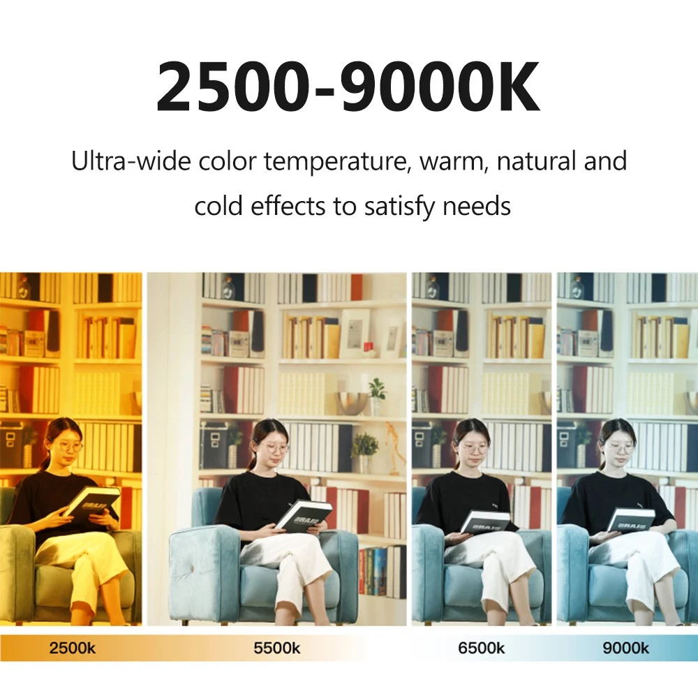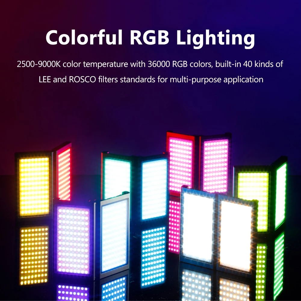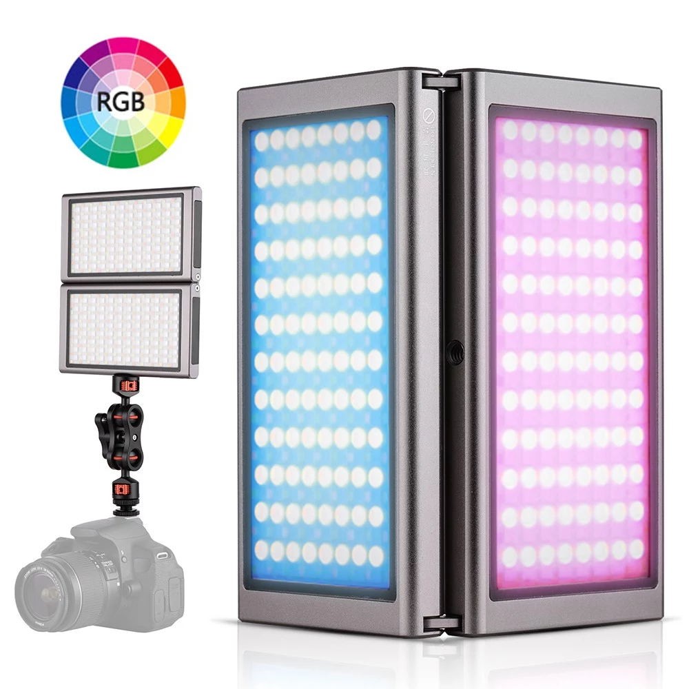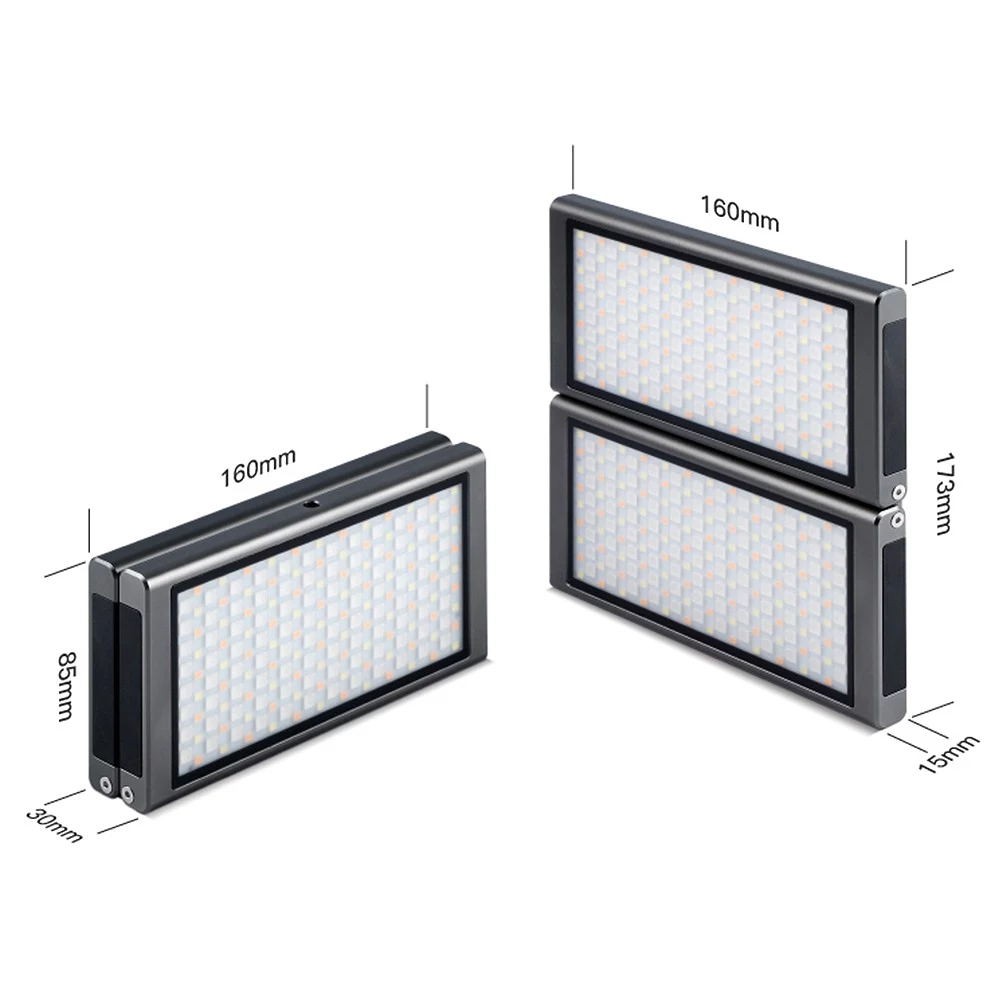 RGB- Vollfarbvideolicht : Das RGB-LED-Licht verfügt über 0-100% dimmbare 2500-9000K, 36000 Vollfarben und zwei 12-W-Lichtpaneele. Die insgesamt 24 W große Leistung bietet CRI ≥ 96 ausreichend Licht für das Füllen von Videolicht und für Studiofotografie.
