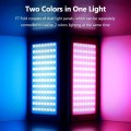 Einzigartiges magnetisch faltbares Design: Das Licht besteht aus faltbaren doppelten LED-Panels, einer soliden Struktur aus Aluminiumlegierung und einer magnetischen Funktion, die es vielseitiger für zweifarbige Beleuchtung und Mehrzweckanwendungen macht und die üblichen Beleuchtungsregeln durchbricht.