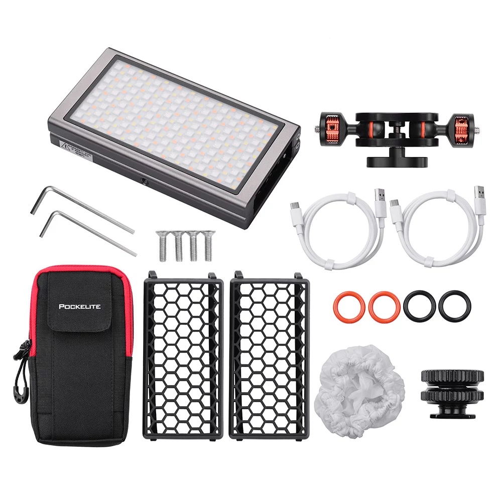 Viel Zubehör: Mit magischem Arm und Kaltschuhadapter für die einfache Montage einer Kamera, eines Stativs oder eines Rigs, mit Wabenabdeckung und weichem Tuch, um bei Bedarf unterschiedliche Lichteffekte zu erzielen.