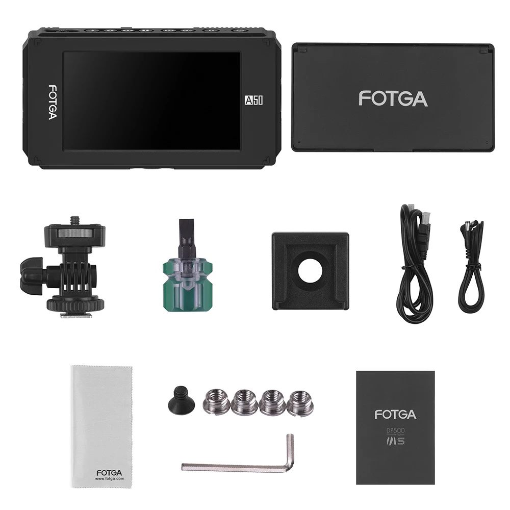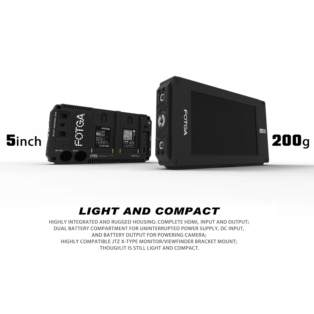 Unterstützt HDMI 4K-Eingang / Ausgang. (Kein SDI-Eingang / Ausgang für dieses Modell A50T). 3,5 mm Kopfhörerausgang. Kompatibel mit fast allen Kameras und Camcordern. USB-Anschluss für Firmware-Upgrade. Mehrere Verbindungslöcher (1/4 Zoll, 3/8 Zoll, M6 und Kaltschuhverbinder).