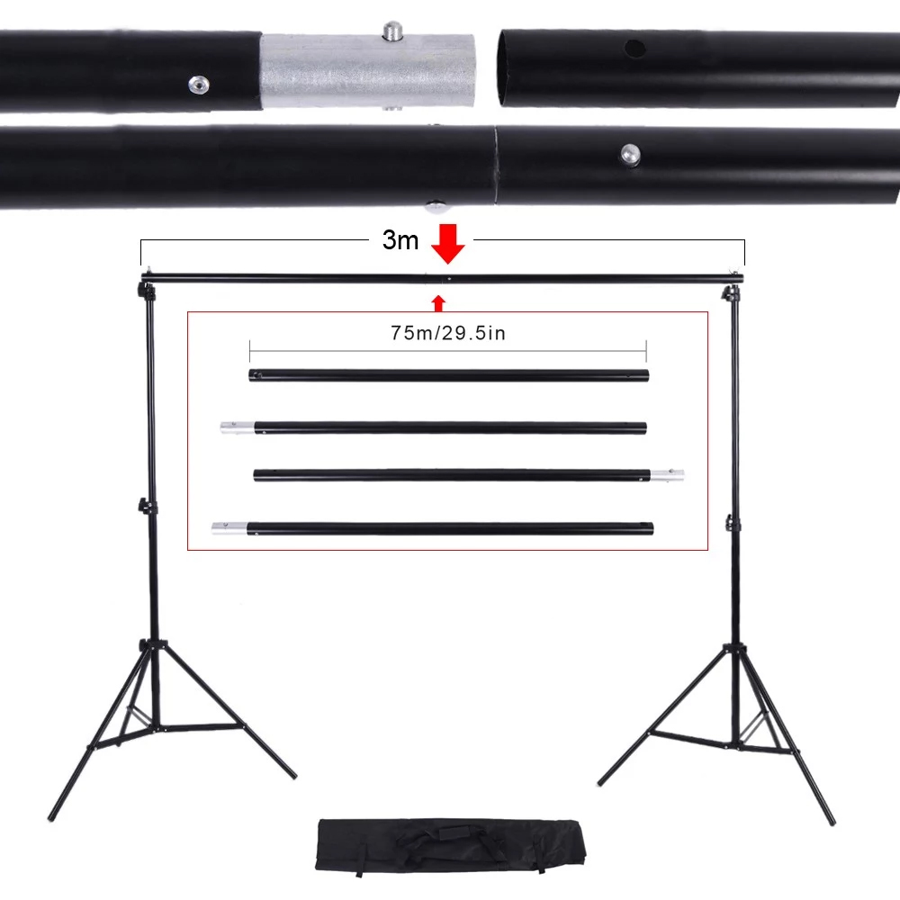Dieser Ständer unterstützt alle gängigen Fotoausrüstung einschließlich Reflektoren, Softboxen, Beleuchtung, Sonnenschirme, Hintergründe und mehr.