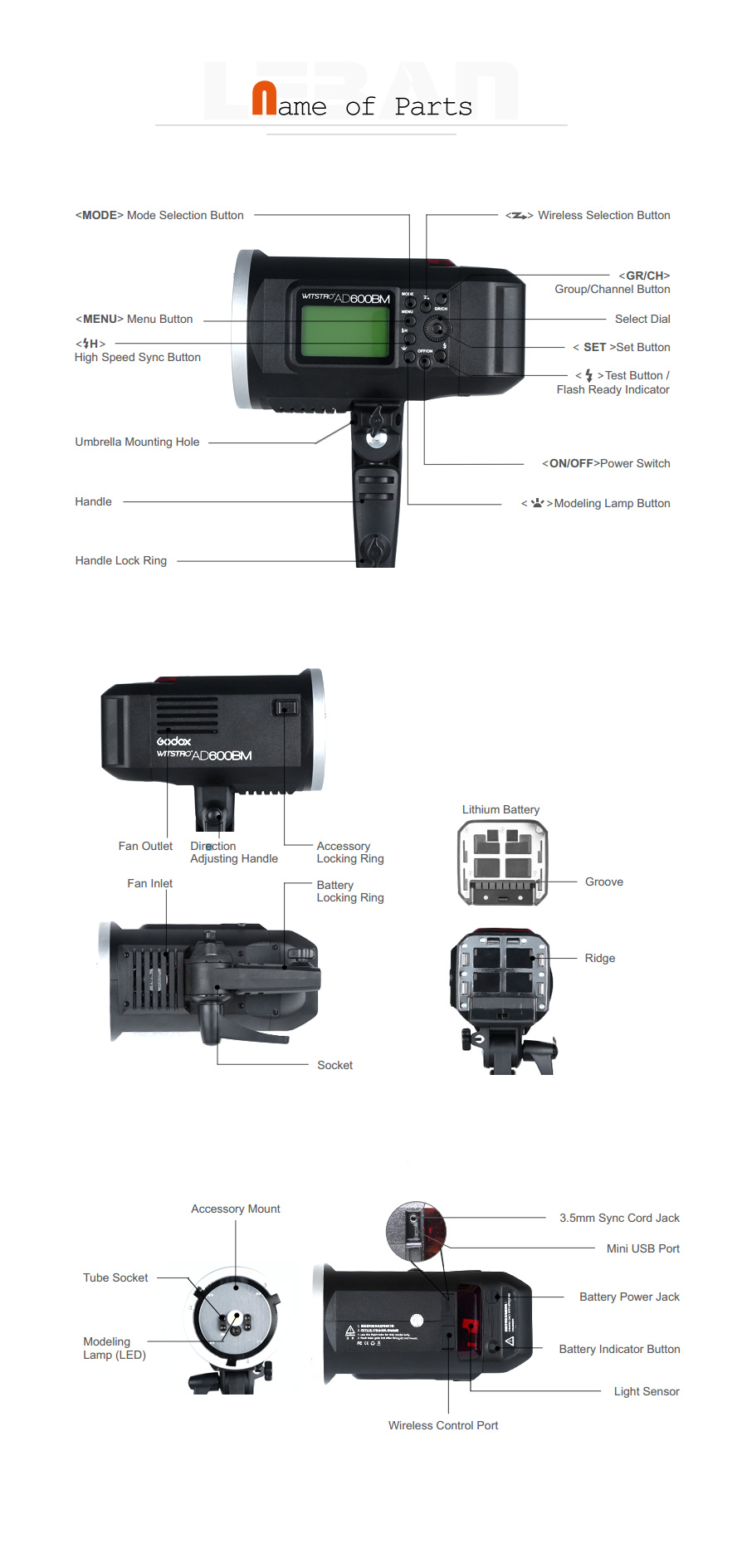 Größe: Volumen (einschließlich Batterie, ohne Lampen und Reflektoren): 220 * 245 * 125 mm Gewicht (mit Batterie, ohne Lampen und Reflektoren): 2,66 kg