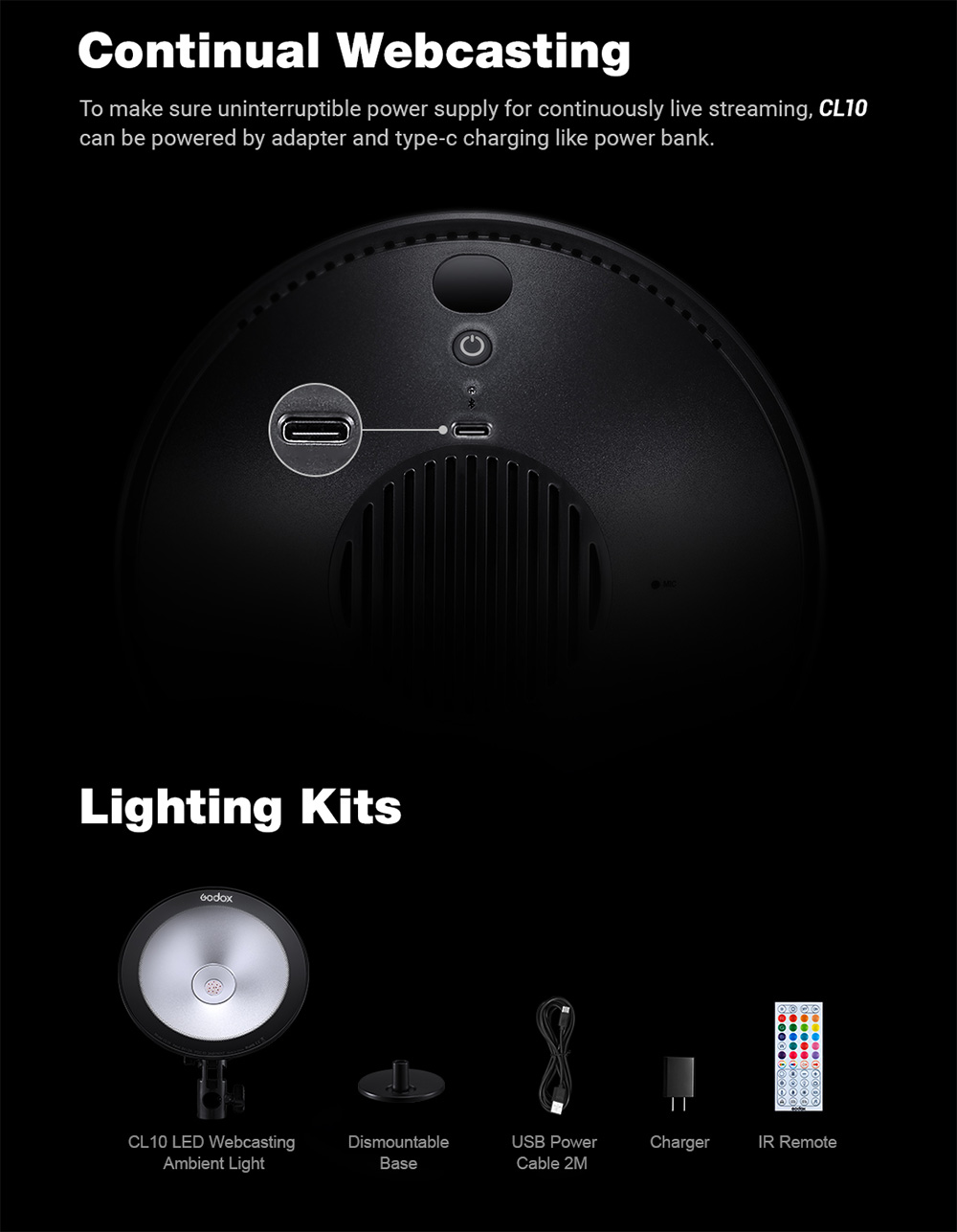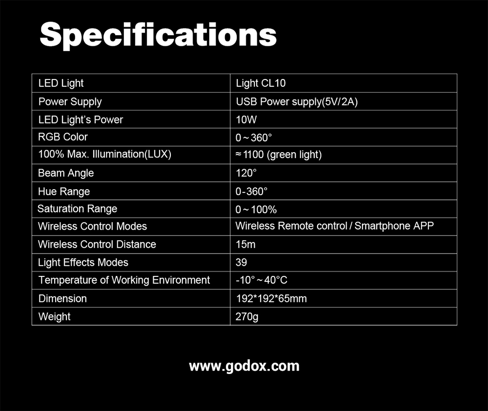 Godox CL10 10W LED mehrfarbige Webcasting Ambient Light App-Unterstützung