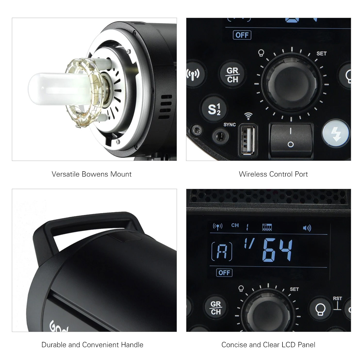 Prägnantes und klares LCD-Display sowie einfache Tastenbedienung. Die Bowens-Halterung fügt verschiedene lichtformende Zubehörteile wie Softbox und Lichtröhre hinzu und sorgt so für einen flexiblen und kreativen Lichteffekt.