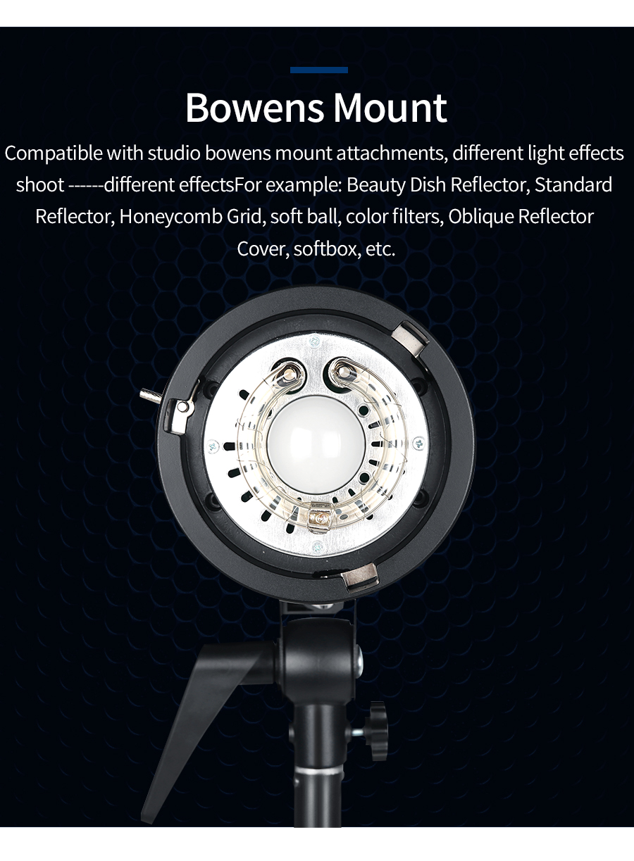 - Kompakte und leichte Karosserie mit kompatibler Bowens-Halterung