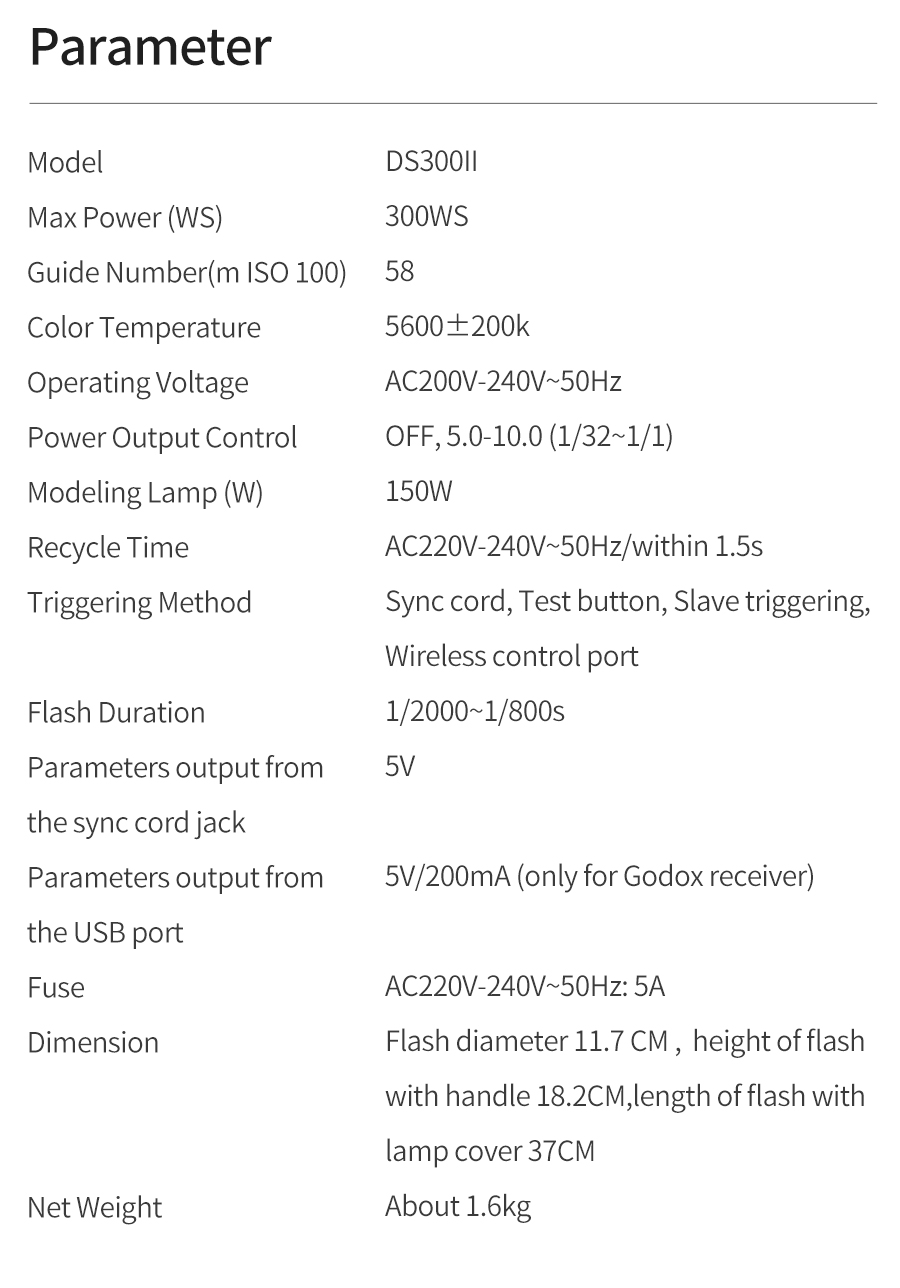 Vielen Dank, dass Sie sich für den Studioblitz der DEII-Serie entschieden haben. Es handelt sich um ein langlebiges und qualitativ hochwertiges Blitzgerät mit umfassenden Funktionen, mit denen Fotografen die gewünschten Lichteffekte erzielen können. Das Produkt eignet sich für Hochzeits-, Porträt- und Produktfotografie.