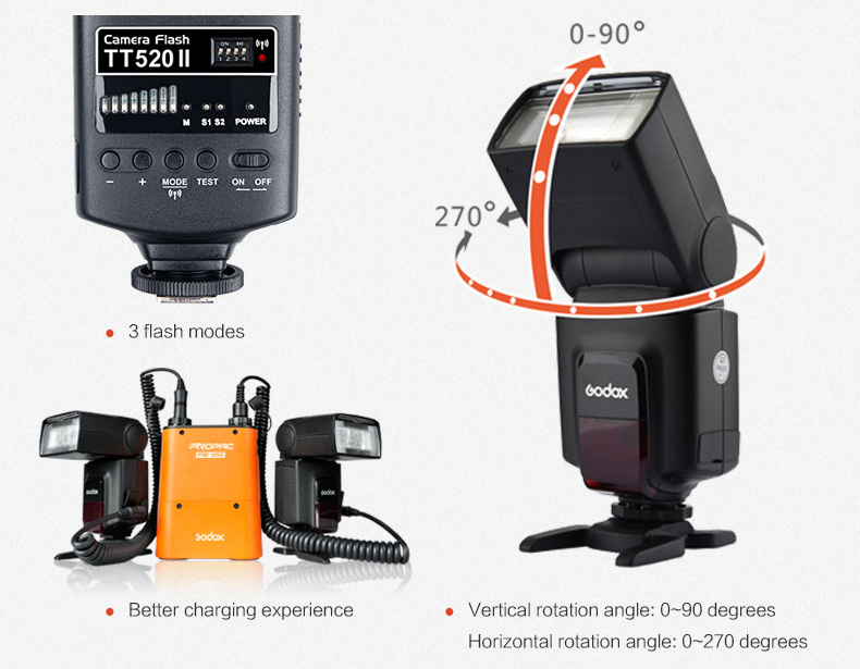 Mit build-in wireless signal, diese Godox Thinklite kamera flash TT520II unterstützt drahtlose auslösung funktionen, die ist geeignet für fast alle DSLR kameras mit standard-blitzschuh.