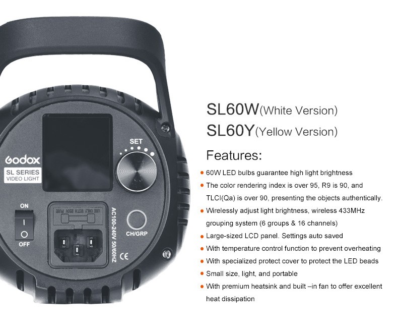 Godox SL-60 Video Licht bietet hohe licht helligkeit und farbe rendering index mit high-qualität LED perlen, präsentiert die objekte authentisch. Die video licht ist ausgestattet mit eine fernbedienung einstellen helligkeit und gruppierung dimmen drahtlos, und eine große LCD panel zu display die helligkeit und temperatur genau. Es der schafft stabile licht ressource und sogar beleuchtung für video aufnahme, photojournalistic und hochzeit schießen, etc.
