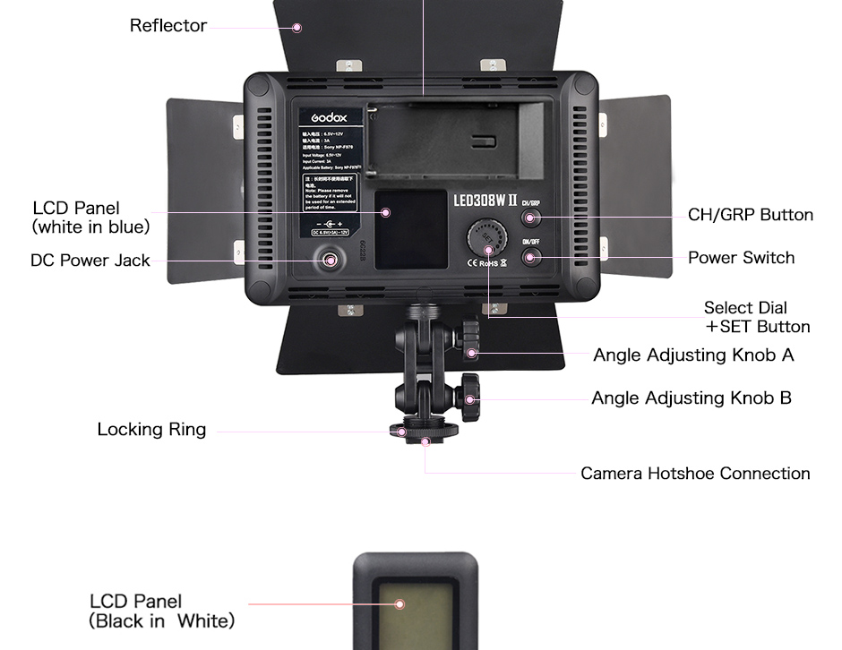 -1 x Godox 308 W II LED Video Licht (Batterie nicht enthalten)