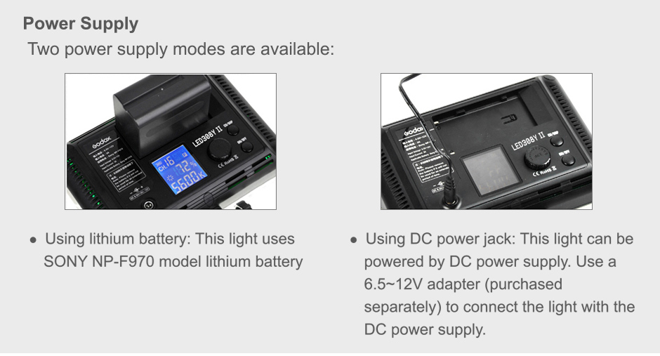 -Lithium-Batterie: 7,4 V Lithium-Batterie (Sony NP-F970 modell lithium-batterie) (Batterie nicht enthalten)