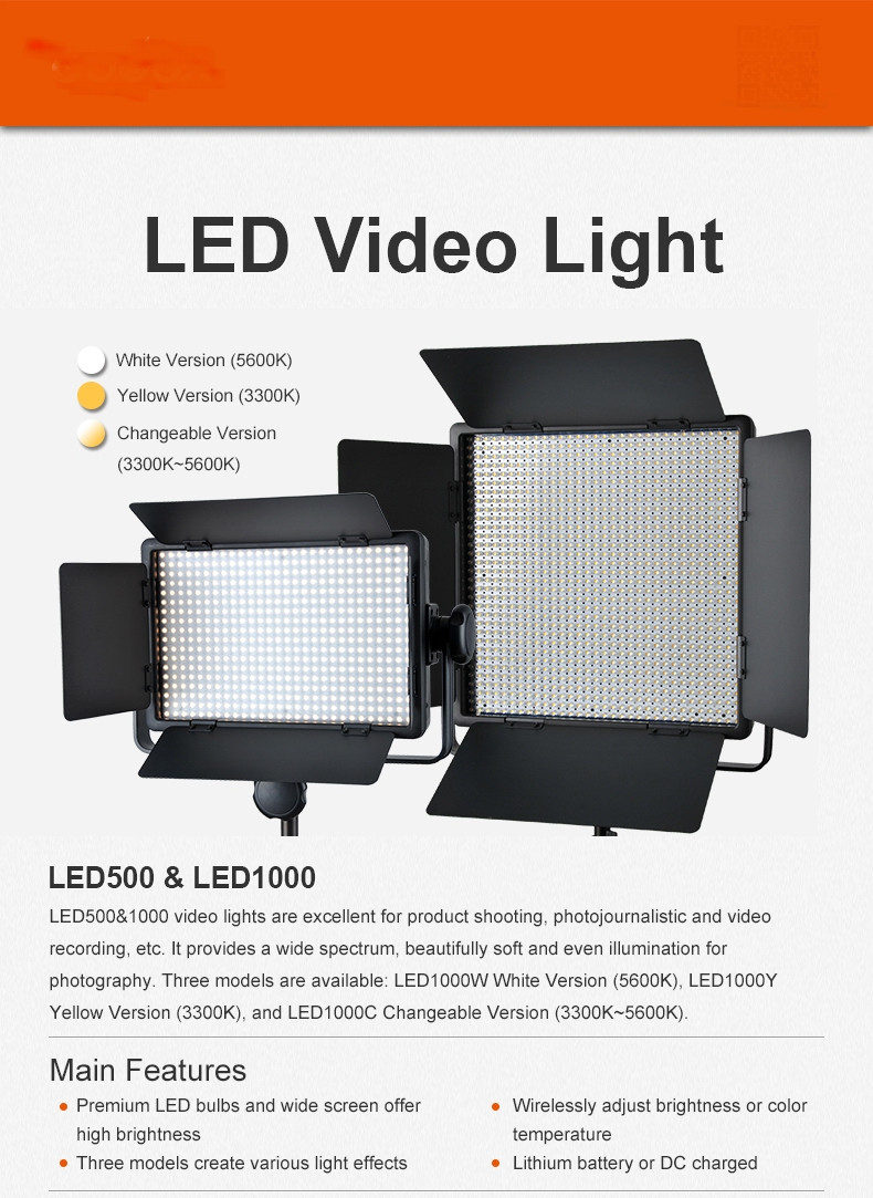 LED500Y Video Lichter sind ausgezeichnete für produkt schießen, photojournalistic und video aufnahme, etc.