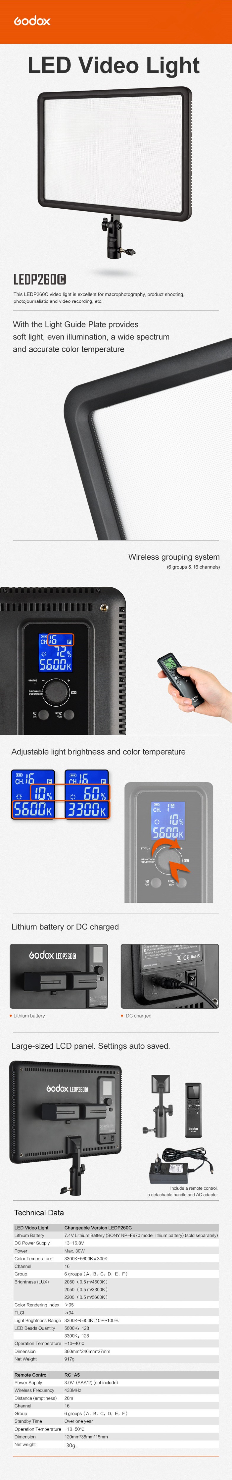 Die Godox LEDP260C camear video licht bietet eine funktional und langlebig beleuchtung lösung für studio und werkstatt schießen, sind ausgezeichnete für macrophotography, photojournalistic und video aufnahme, etc.