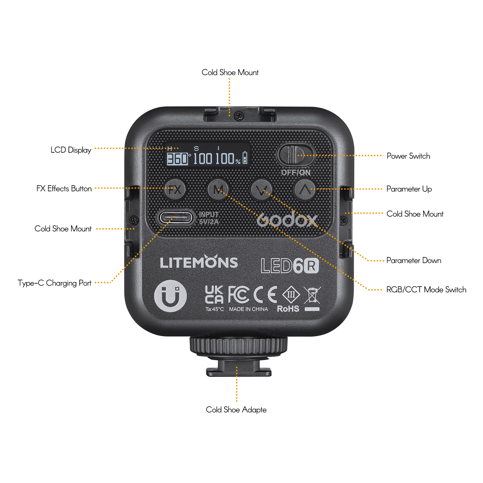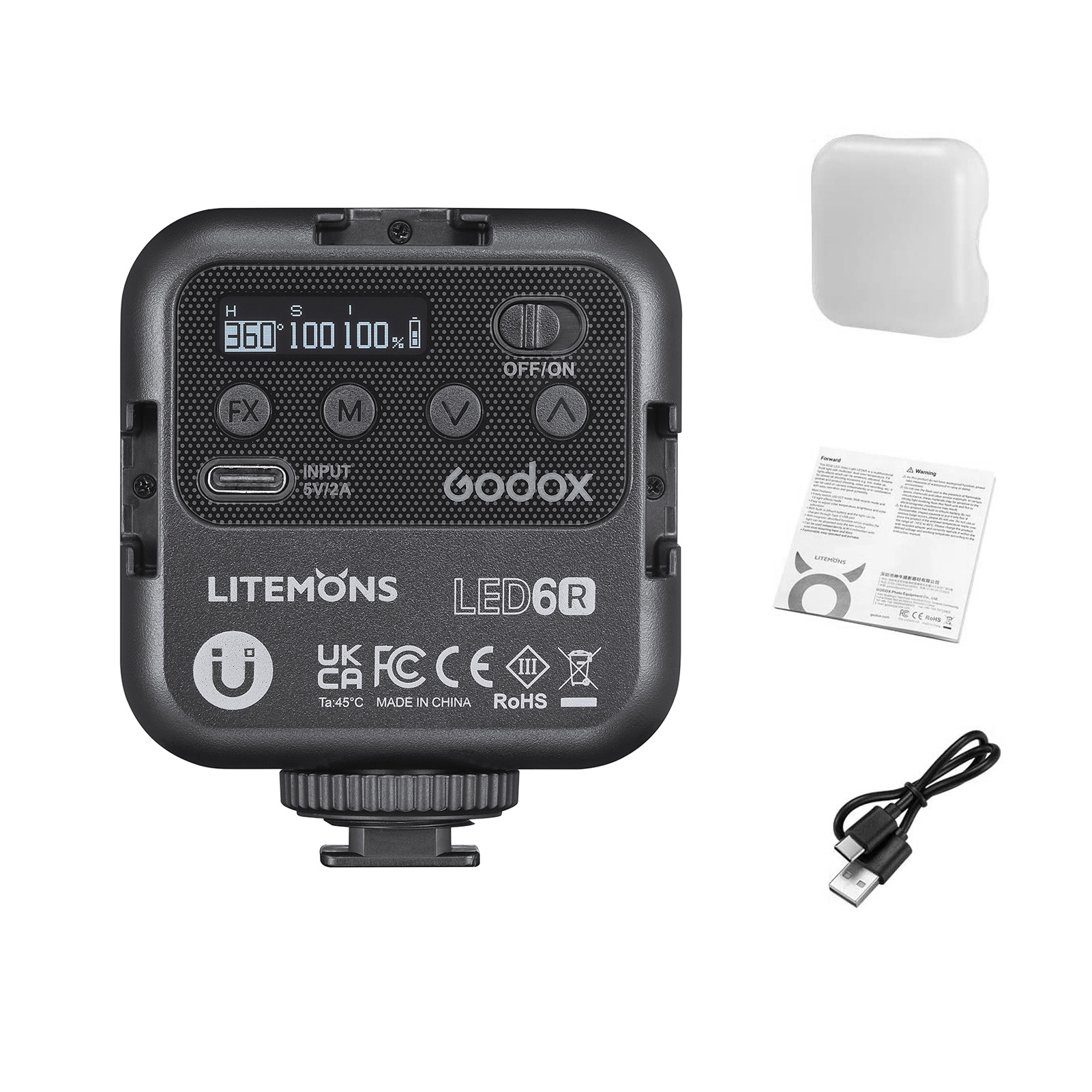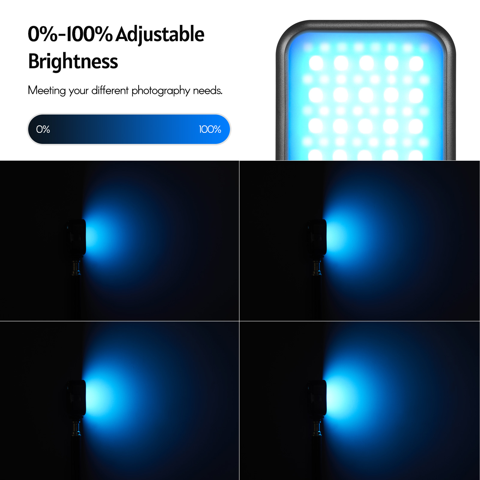 RGB & CCT Beleuchtung Modi:Unterstützt 0 °-360 ° einstellbar, 0-360 einstellbar sättigung, 0-100% einstellbare helligkeit und 3200K-6500K breite farbe temperatur bereich, die erfüllt alle ihre beleuchtung notwendigkeit von verschiedenen schießen umwelt.