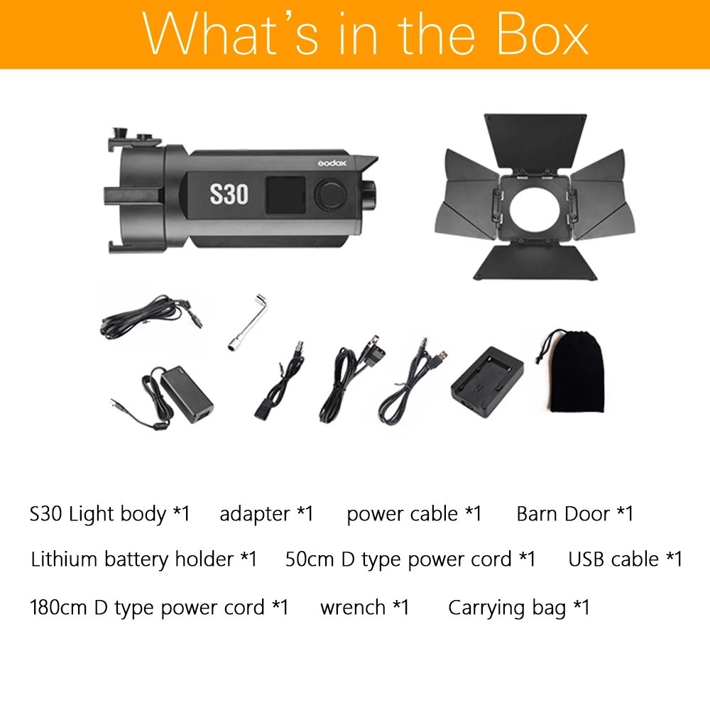 Godox S30 30W Einstellbare LED Video Licht Studio Fotografie Kontinuierliche Licht Mit Barn Tür für Professionelle Fotografie