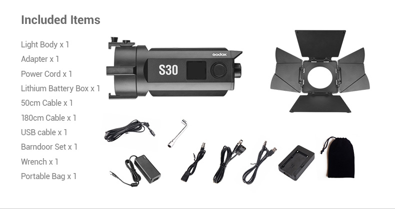 Die S30 kombiniert eine fülle von zubehör präzise zu steuern die beleuchtung zu erfüllen die bedürfnisse der kreative fotografie.