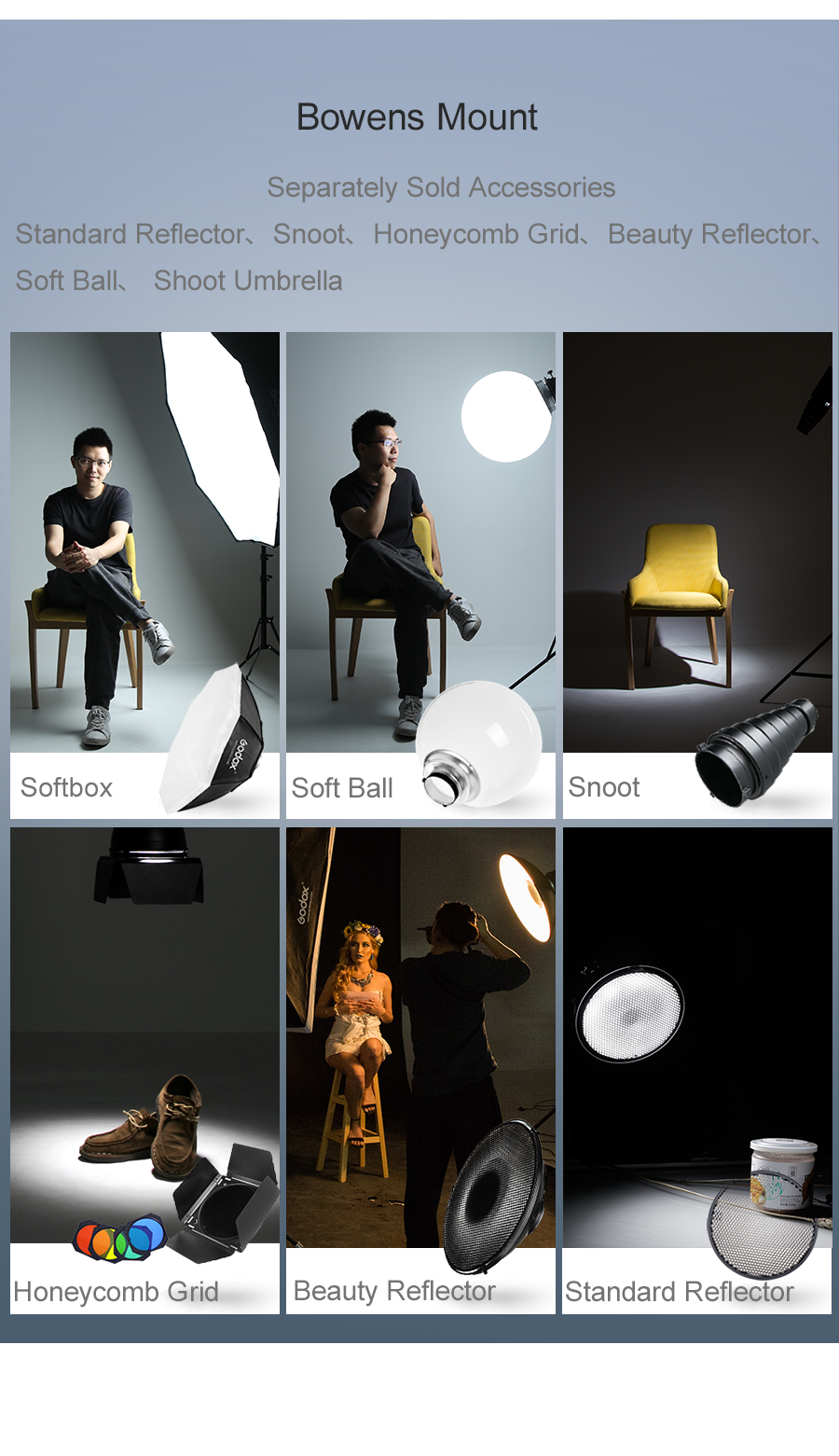 - Installiert schnell verschiedene Zubehörteile für Bowens-Montagelampen wie Softbox