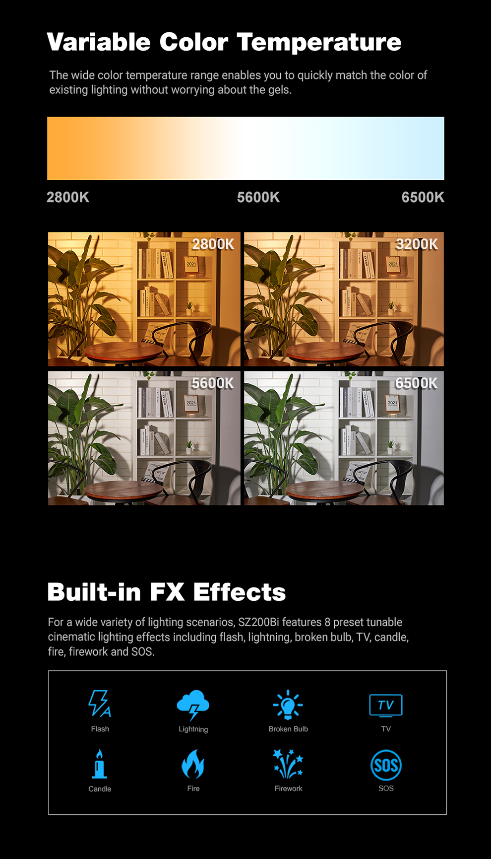 FX-Effektmodus: 8 aktuelle abstimmbare kinematische Lichteffekte