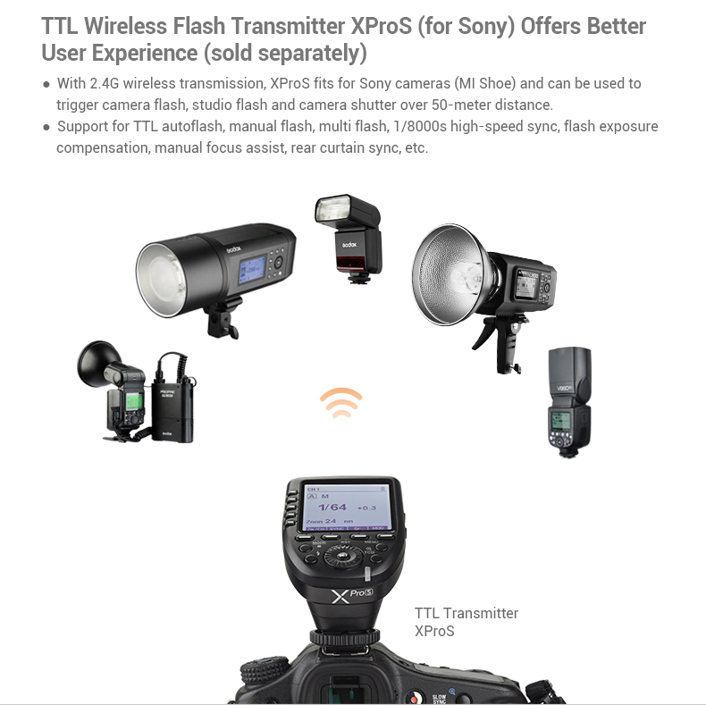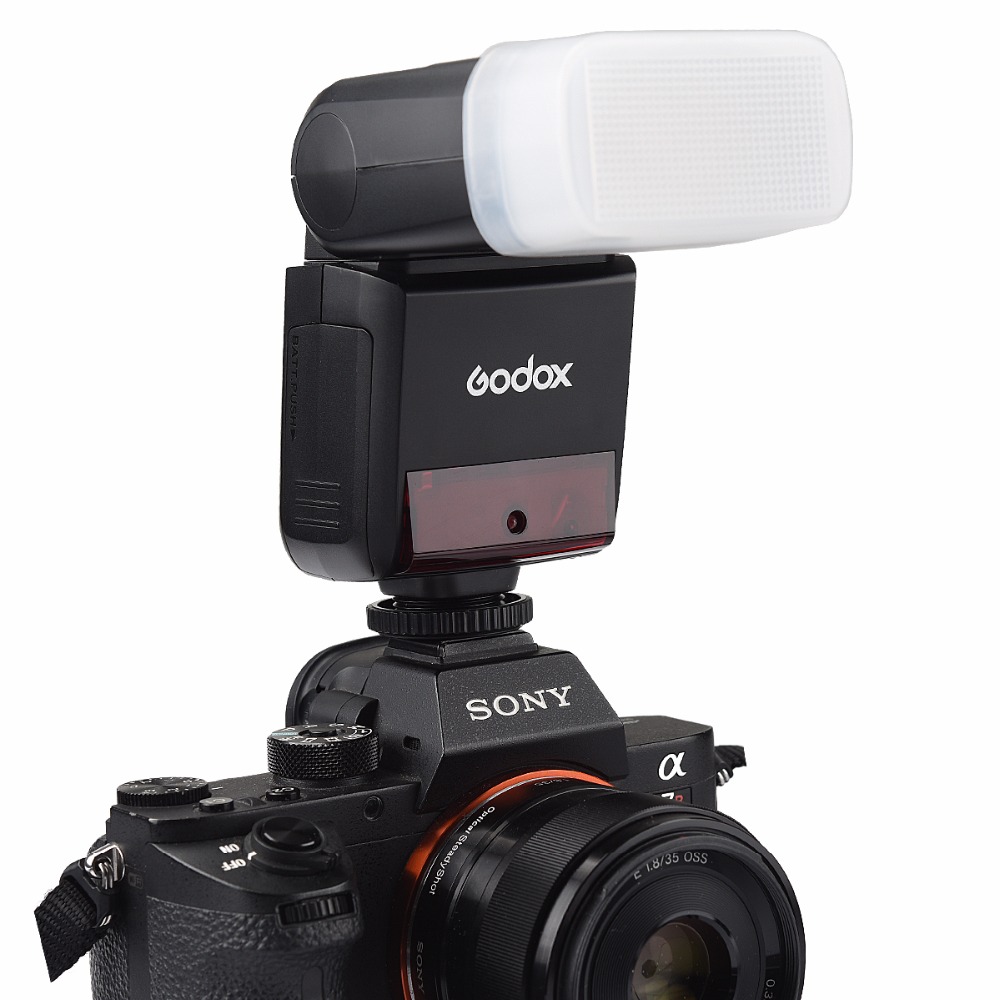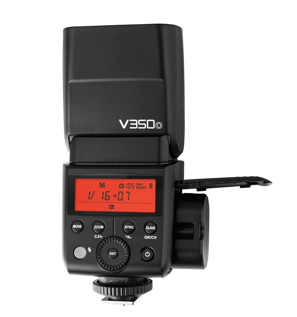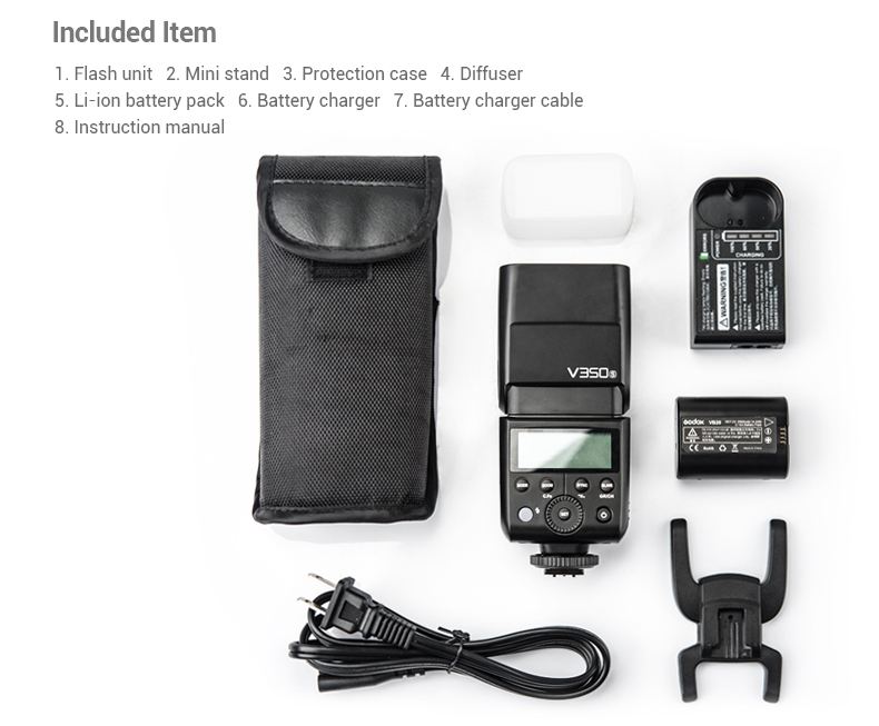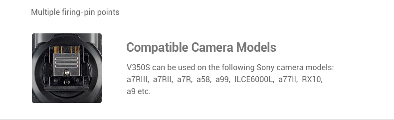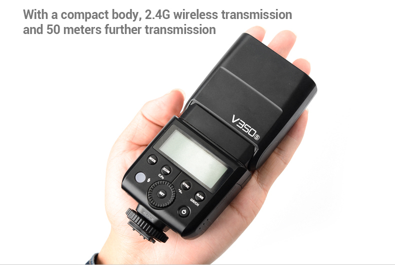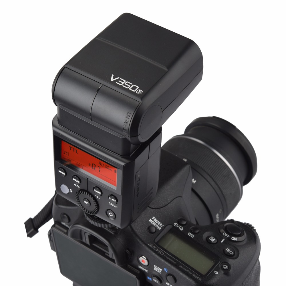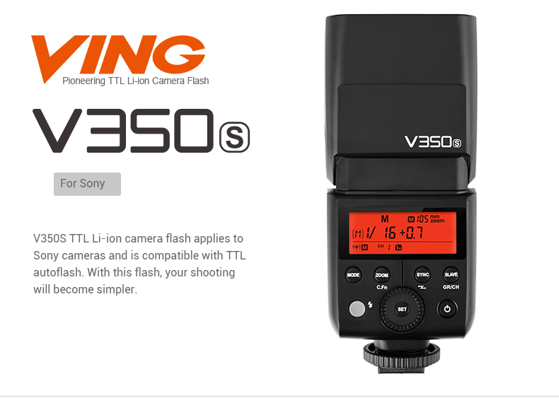 Godox V350S TTL kamera speedlite mit Li-Ion batterie eigenschaften 2,4G drahtlose übertragung, TTL autoflash, 1/8000 s HSS und kann verwendet werden als master oder slave einheit. Es ist kompatibel für Sony A77II/A7RII/A7R/A58/A99/ILCE6000L/A77II/RX10 /A9 kameras. Mit diese flash-, ihre schießen wird einfacher.
