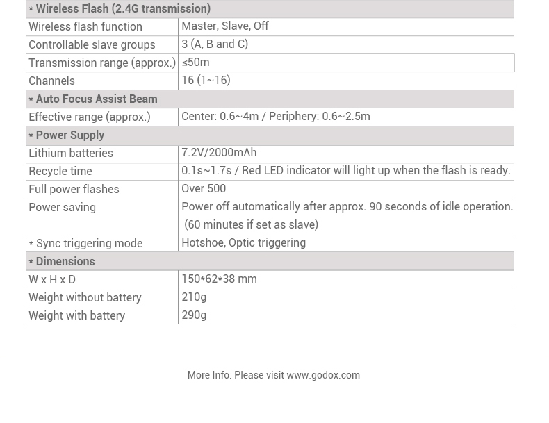 Eingebaute 7,2 V 2000 mAh Li-Ion akku bietet 0,1 s-1,7 s recyceln zeitUnd über 500 volle leistung blinkt, und kommt mit batterie ladegerät für bequeme aufladung.