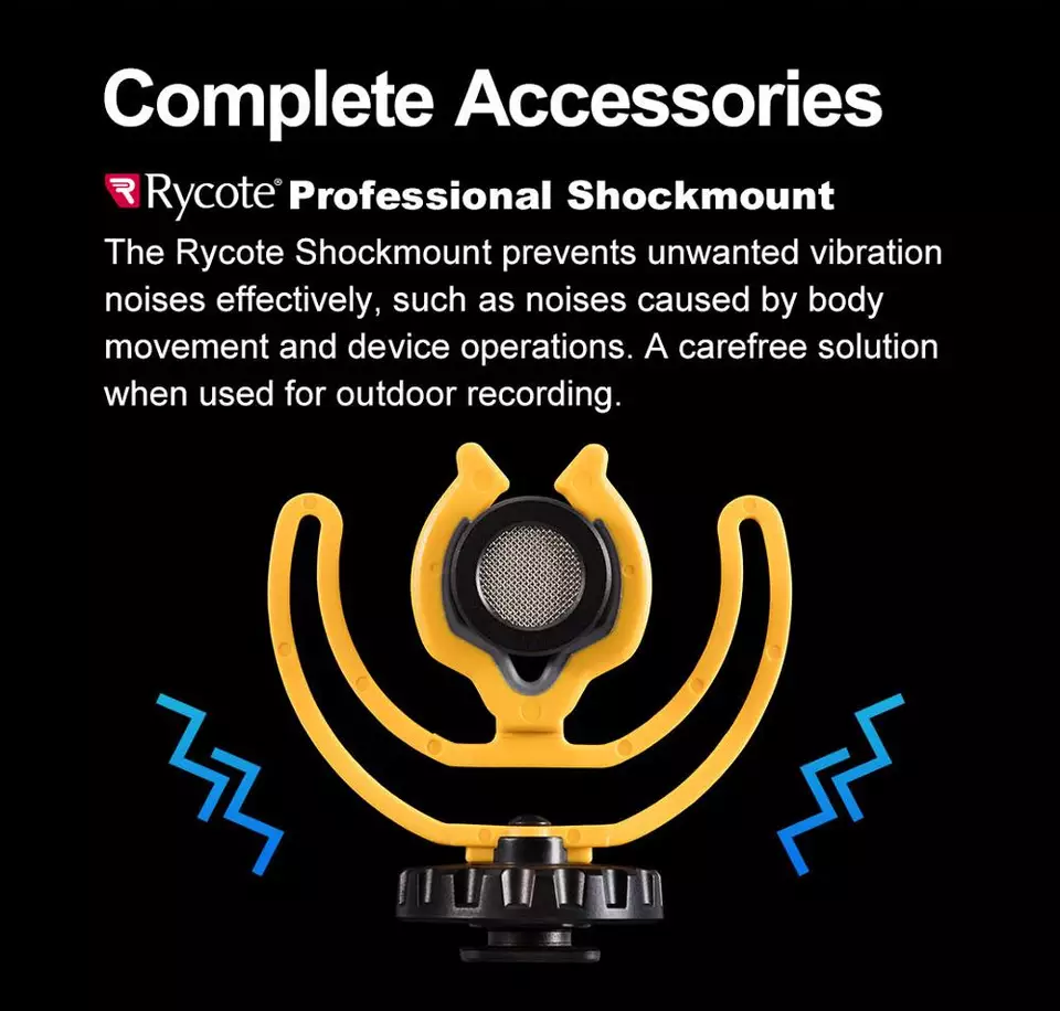 4. 【Rycote Professional Shockmount】 Der Rycote Shockmount verhindert unerwünschte Vibrationsgeräusche wie Geräusche, die durch Körperbewegungen und Geräteoperationen verursacht werden. Eine sorglose Lösung für Aufnahmen im Freien.