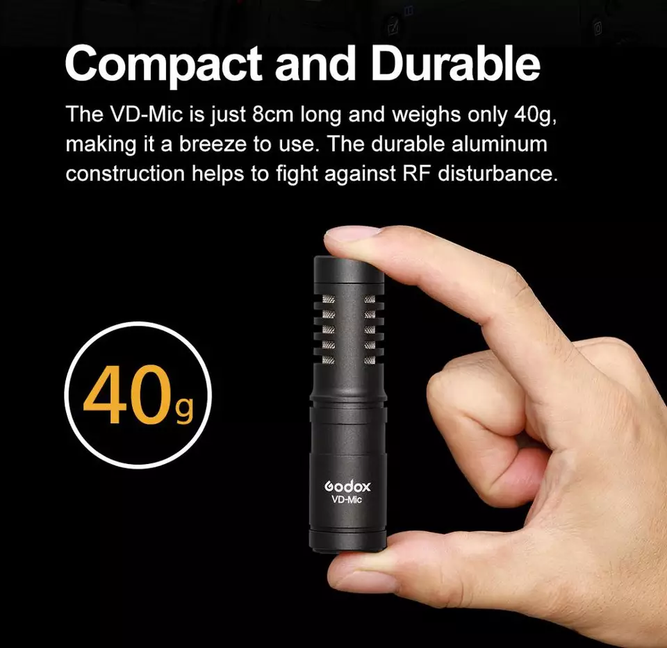 1. 【Kompatibilität und Langlebigkeit】 Mit einem 3,5-mm-TRS-Ausgangskabel und einem 3,5-mm-TRRS-Ausgangskabel kann das Godox VD-Mic an Kameras, Camcorder, Rekorder, Smartphones, Tablets usw. angeschlossen werden. Es ist 8 cm lang und wiegt nur 0,04 kg Dies macht es zu einem Kinderspiel. Die robuste Aluminiumkonstruktion hilft bei der Bekämpfung von HF-Störungen.