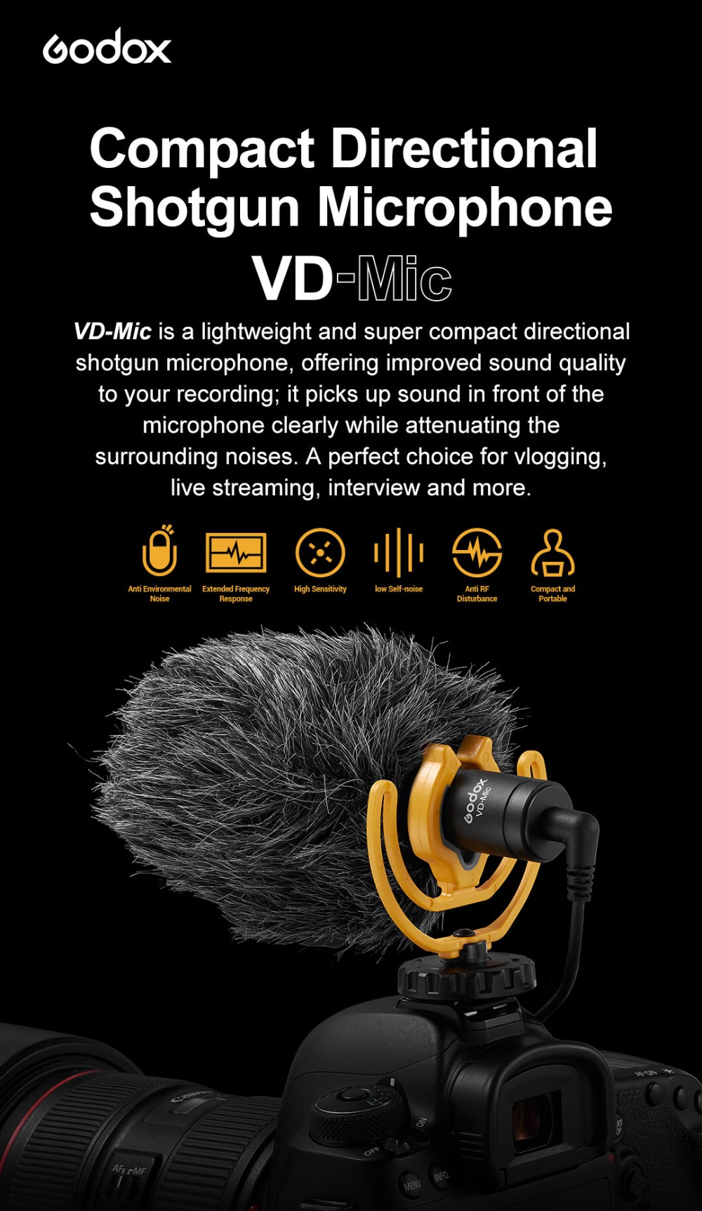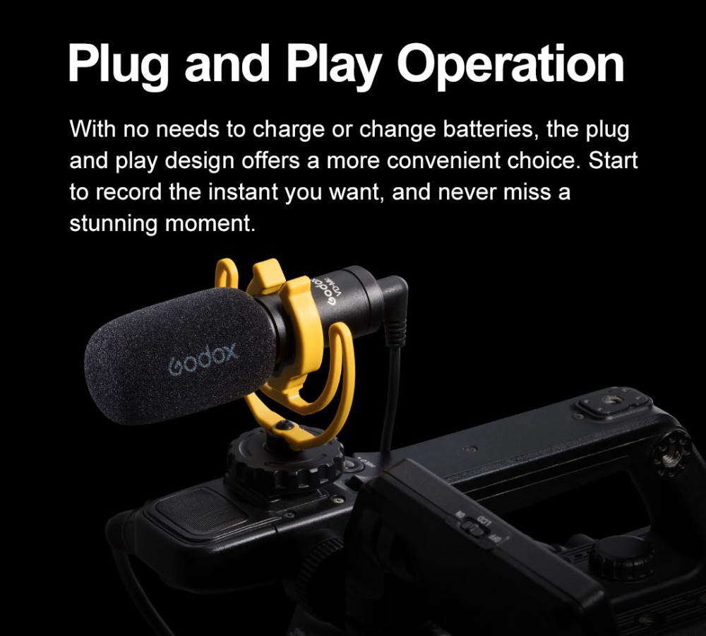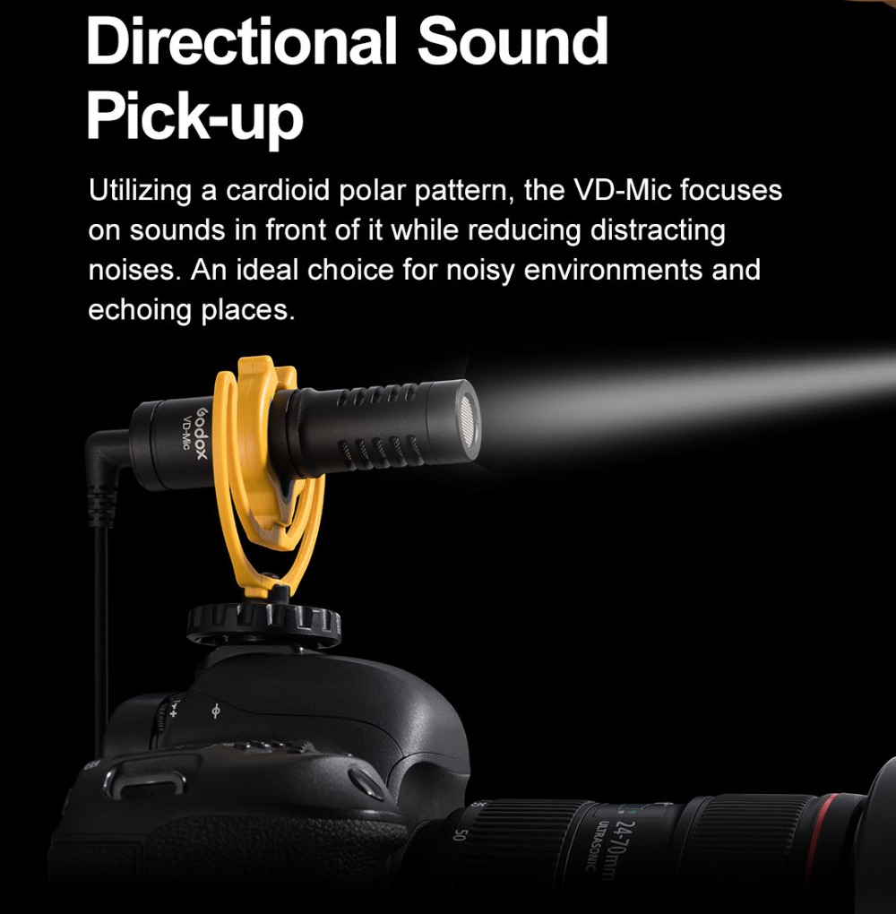 2. 【Directional Sound Pickup & Plug & Play-Betrieb】 Das VD-Mic Shotgun Microphone verwendet ein Nierencharakteristikmuster und konzentriert sich auf Geräusche vor ihm, während störende Geräusche reduziert werden. Eine ideale Wahl für laute Umgebungen und Echo-Orte. Ohne Plug-In oder Batteriewechsel bietet das Plug-and-Play-Design eine bequemere Wahl. Beginnen Sie mit der Aufnahme des gewünschten Augenblicks und verpassen Sie nie einen atemberaubenden Moment.