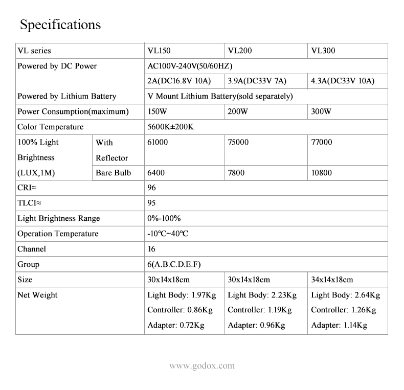 Eine Besonderheit der Godox VL300 ist, dass du sie auch ohne Stromanschluss verwenden kannst. Das LED Dauerlicht Fotografie Akku verfügt nicht nur über ein 4 -poliges XLR-Netzkabel, sondern kann zudem über zwei optionale V-Mount Akkus betrieben werden. Schutzkappe und Transporttasche sind im Lieferumfang enthalten.