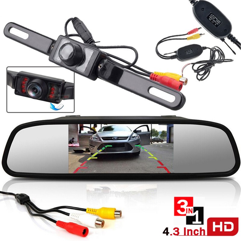 NEU und Original HD 4,3 zoll Spiegel Monitor DVD Display Drahtlose IR Nachtsicht Rückfahrkamera Backup-kamera Parkplatz Rückfahrkamera