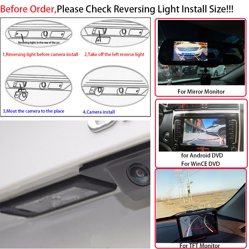 Weil die gleiche auto modell in verschiedenen ländern kann haben einige unterschied, überprüfen sie bitte die kamera größe und vergleichen die installation von ihr auto sorgfältig um fehler zu vermeiden