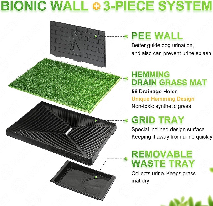 Hompet Hundeklo verfügt über ein dreischichtiges Design, erhöhten Kunststoffablaufschale sitzt fängt den Urin auf und leitet ihn durch das Drainageloch in die Auffangbox zur einfachen Entsorgung. Die aufgerüstete bionische Wand ist besser für das Urinieren des Hundes und kann auch Urinspritzer verhindern.
