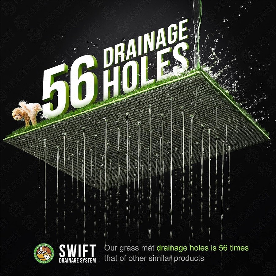 Je mehr Entwässerungslöcher, desto besser die Entwässerung! Hompet Hundetoilette haben 56 Drainagelöcher, um eine gute Drainage zu gewährleisten. Andere Produkte haben Drainagelöcher, die weiter voneinander entfernt sind oder kein Drainageloch, Hundepisse kann zwischen den Drainagelöchern bleiben und anhaltende Gerüche erzeugen.