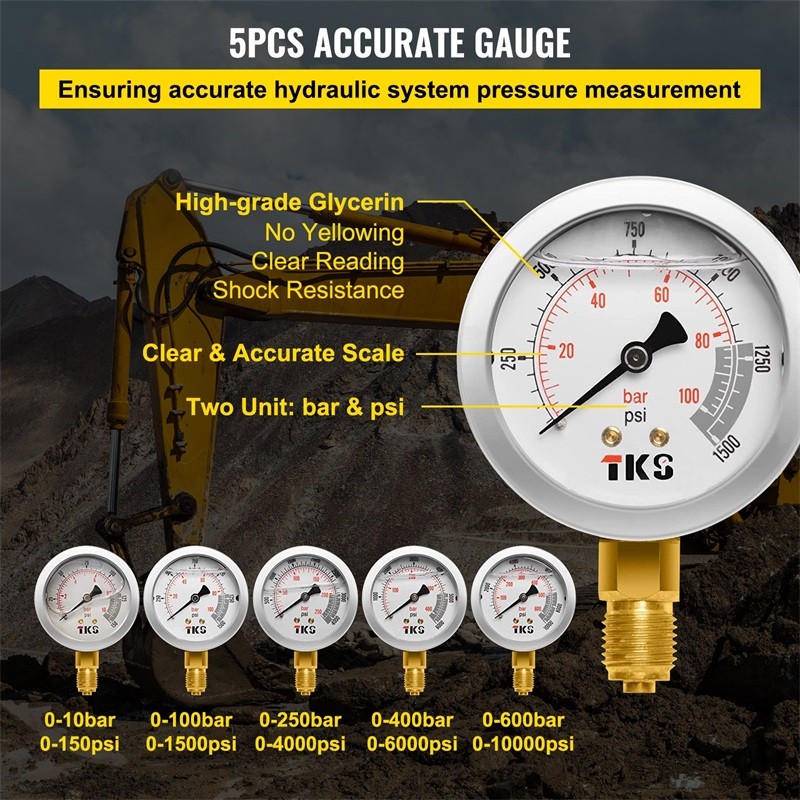 -Dieser Hydraulikprüfsatz passt bequem zu Kompressoren, pneumatischen Geräten und verschiedenen Baggermodellen. Findet häufig Anwendung im Bauwesen, in der Schifffahrt, im Bergbau usw.