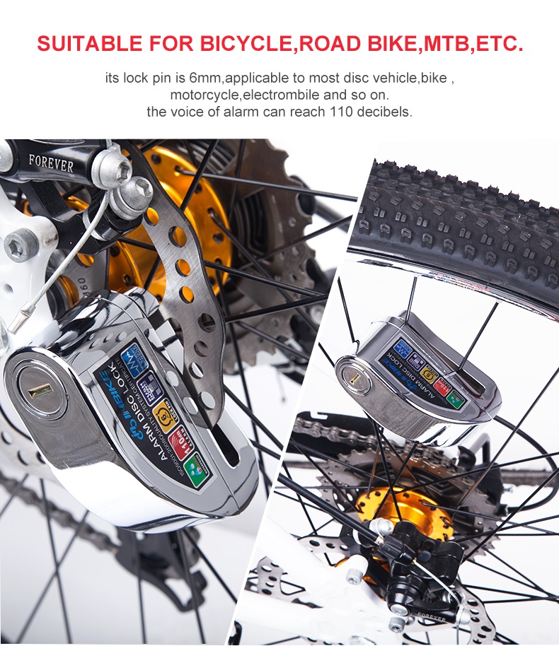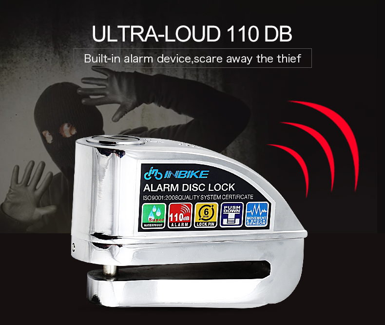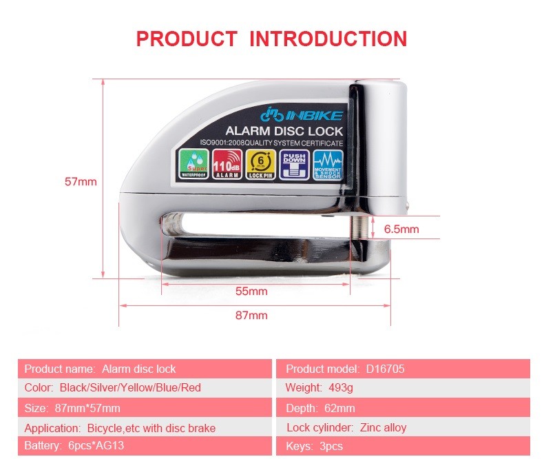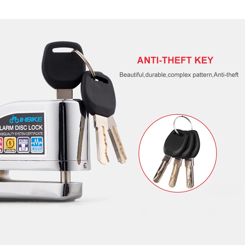 Name:INBIKE Bike Alarm Disc Lock Anti-diebstahl Bremsscheibe Sicherheit Alarm Elektron Schloss 6mm Pin für Motorrad Motorrad sicherheit Fahrrad