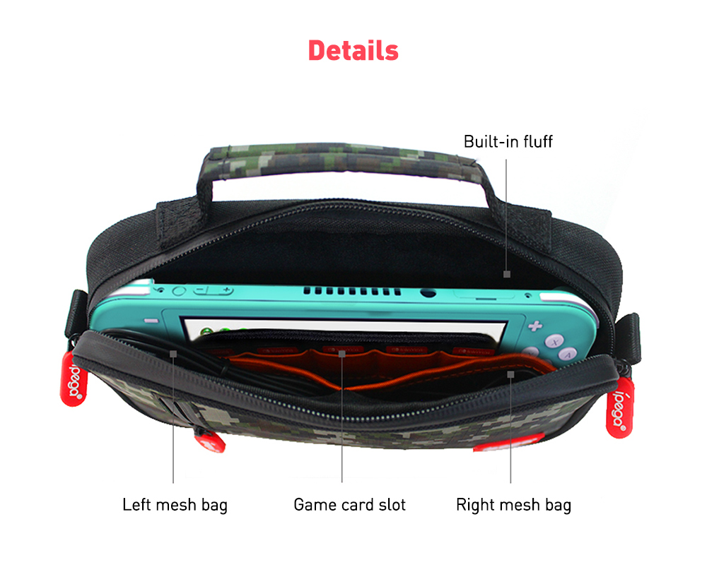 2. Guter Sicherheitsschutz - Hochwertige Stoffe, Abriebfestigkeit und Kratzfestigkeit, kundenspezifische Reißverschlüsse, Öffnen und Schließen des Reißverschlusses, integriertes weiches Plüschgewebe und Kratzschutz, Platz für N-Switch und kleineres Zubehör wie HDMI und USB-Kabel, Spielkarte, TF-Kartenbox usw.