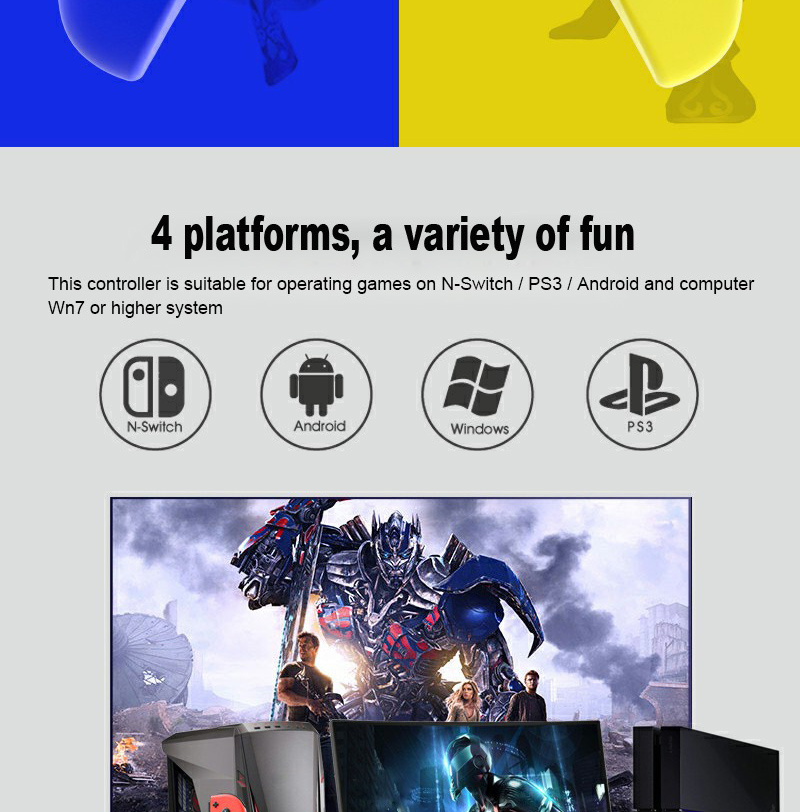 1. Dieser Controller eignet sich zum Betreiben von Spielen auf N-Switch / PS3 / Android- und Computergeräten (Win 7 oder höher).