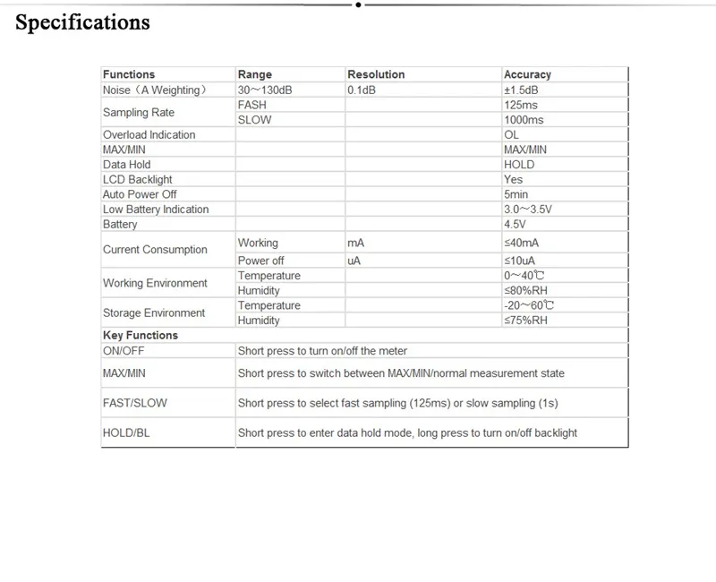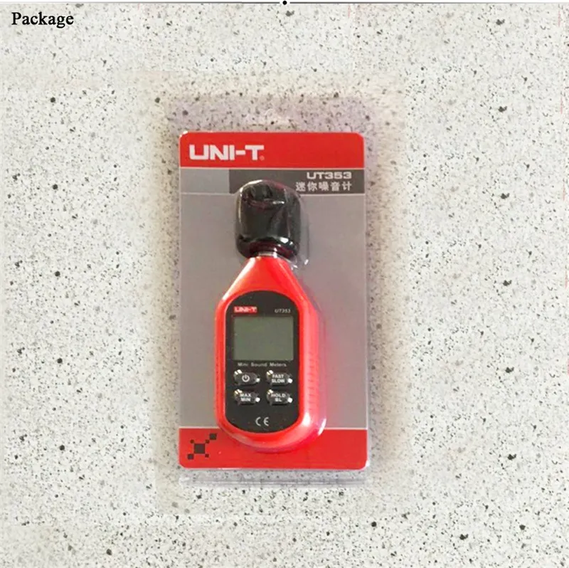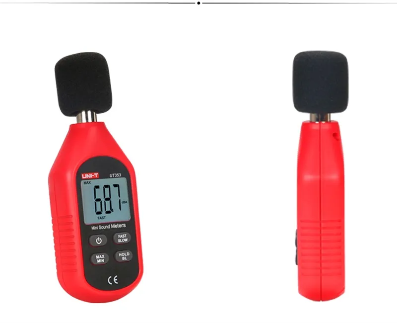 UT353 ist eine mini sound meter konvertieren umgebungs sound in elektrische signale, prozess daten und displays ergebnisse auf LCD. Es nicht haben traditionellen meter fragen wie meter zu große, komplexe operation, und so auf. UT353 können ständig monitor umgebungs sound. Es ist licht gewicht, kompakte, ergonomische, und benutzer freundliche,, der es ein großes werkzeug für überwachung lärm ebenen in hotels, konferenz hallen, heimkino, krankenhäuser, und jede andere lärm umgebungen.