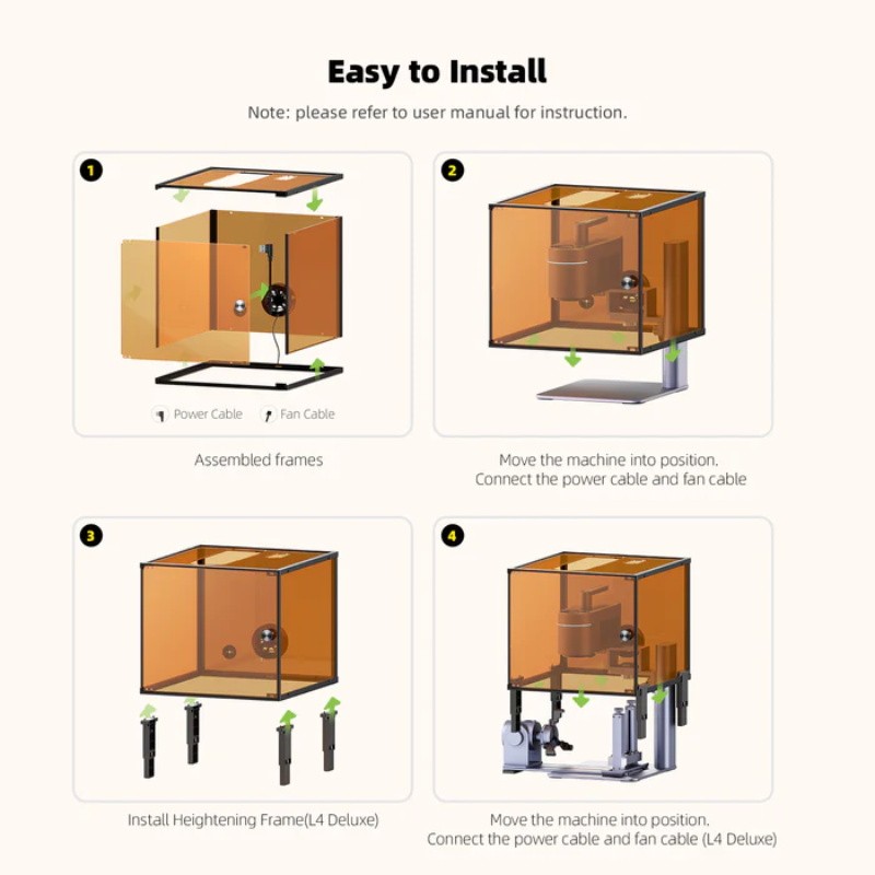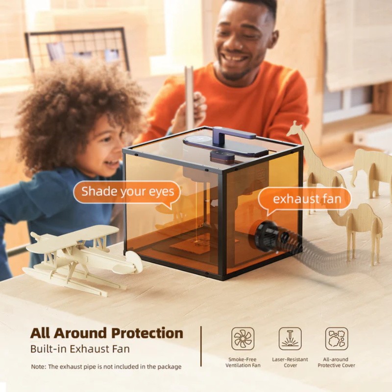 Garantieren Sie einen gesunden Arbeitsplatz: Mit einem eingebauten Rauchabzugsventilator trägt die LP4-Schutzabdeckung dazu bei, den unangenehmen Rauch und Geruch, der während der Lasergravur entsteht, besser abzusaugen. Kann auch hervorragend in Kombination mit dem LaserPecker-Luftreiniger verwendet werden, um optimale Ergebnisse zu erzielen.