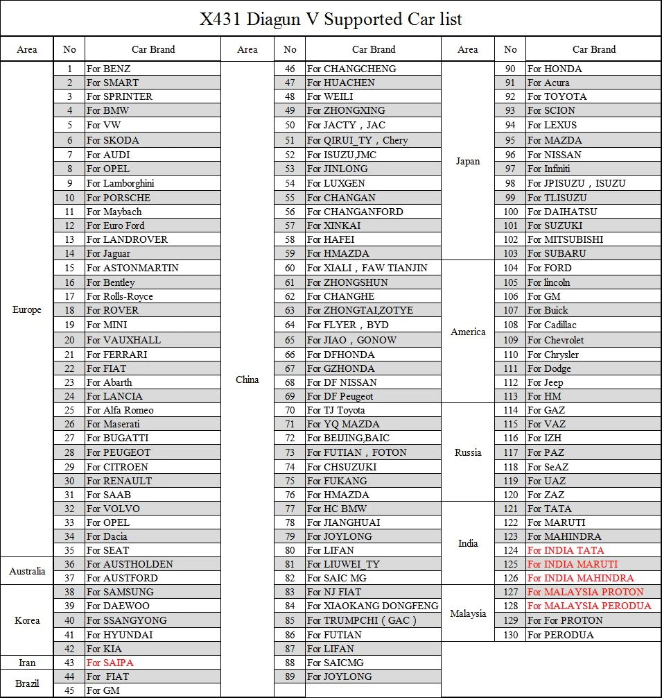 LAUNCH X431 Diagun V unterstützt 150 Marken mit mehr als 10000 autos: