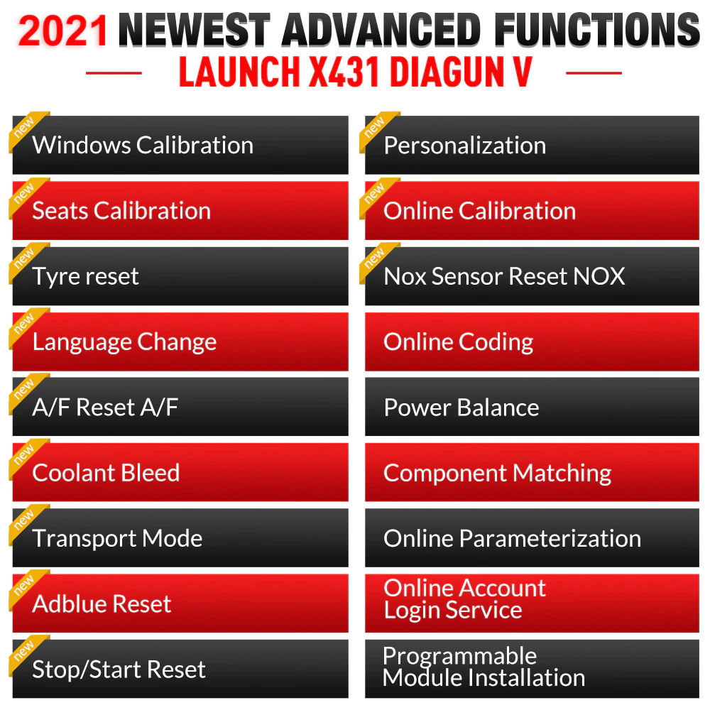 2021 neue Hinzugefügt OE-LEVEL Erweiterte Funktion VON LAUNCH X431 DIAGUN V (Gleiche funktionen wie LAUNCH X431 V +/PLUS, LAUNCH X431 Drehmoment):