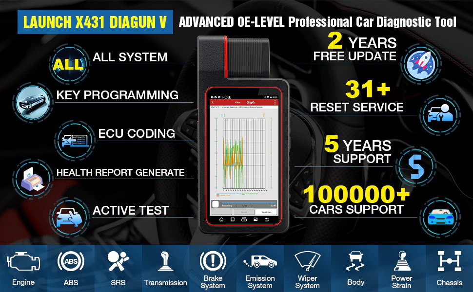 LAUNCH X431 Diagun V ist mit 2 Jahre kostenloser update online und 5 jahre garantie!