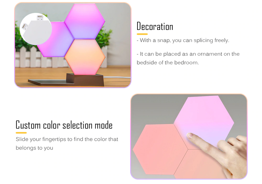 Packungsinhalt: 3 x Nachtlicht, 2 x Verbindungsschnalle, 1 x USB-Kabel, 1 x Basis