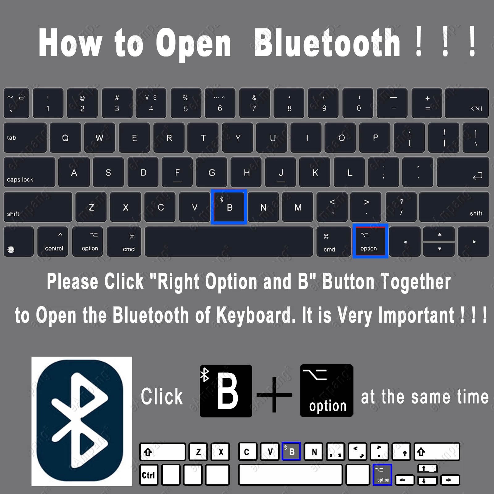 Hinweis 1:Nach Offener Power, bitte Klicken Sie Auf "Richtige Option" und "B"-Taste Zusammen zu Öffnen die Tastatur der Bluetooth. Es ist Sehr Wichtig!