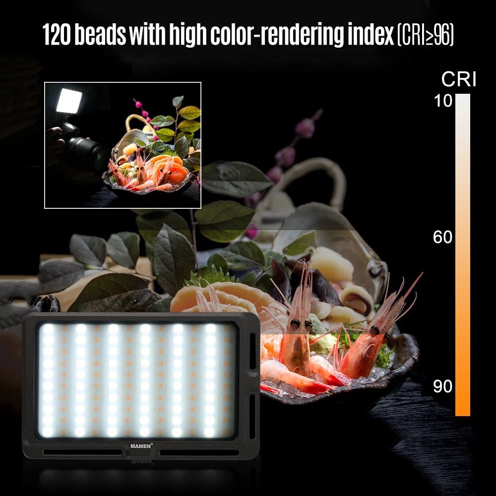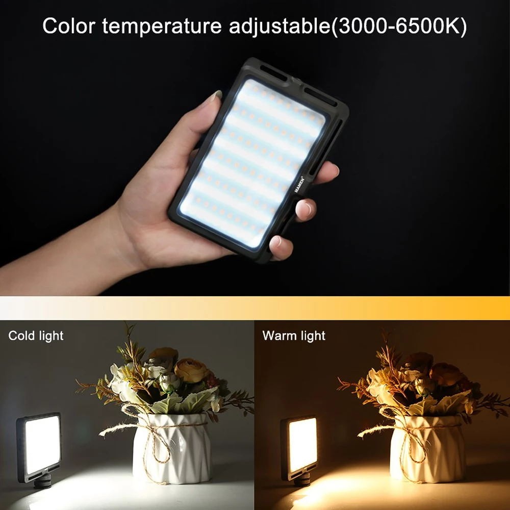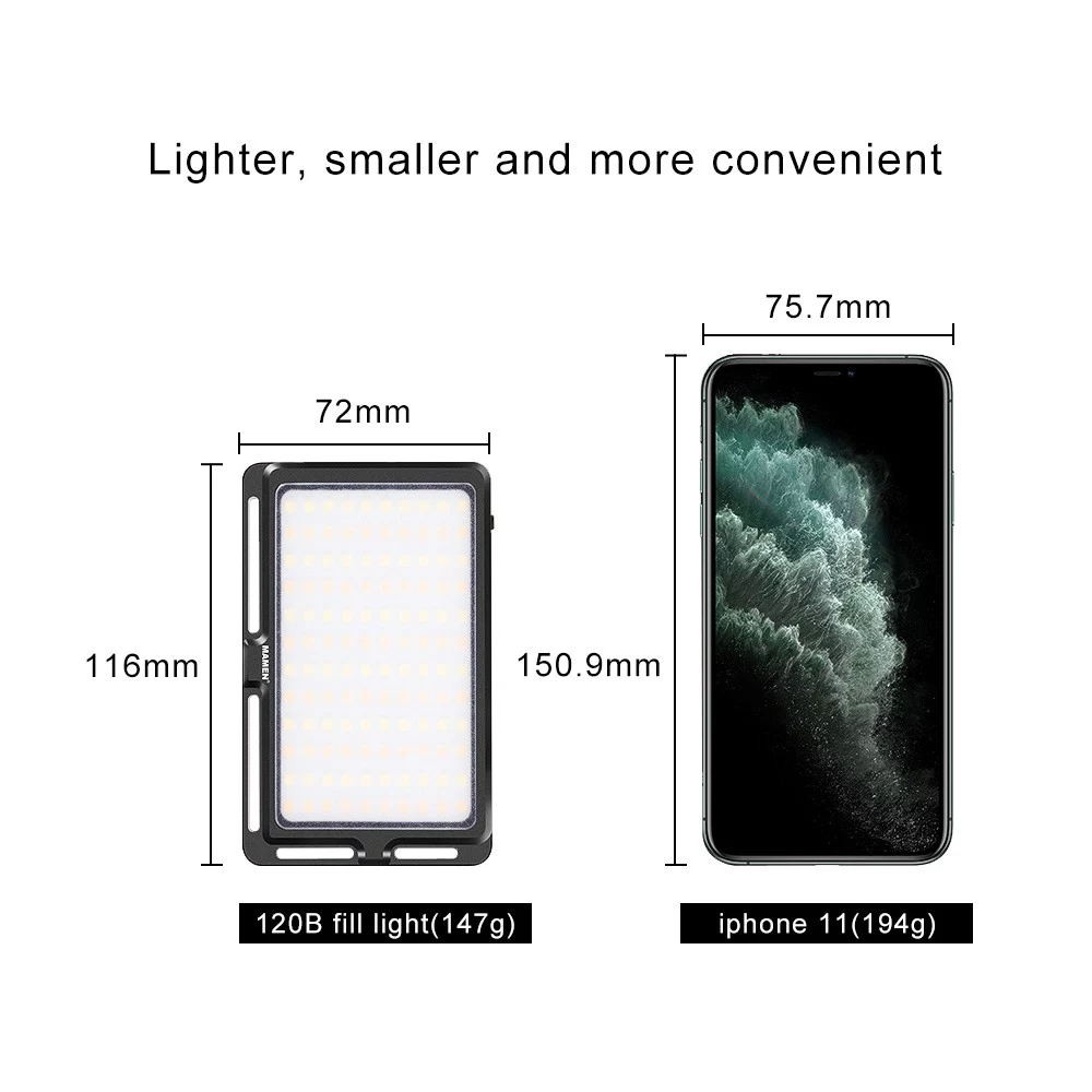 Dieses tragbare LED-Videolicht mit hochwertigen 120-teiligen LED-Perlen, einer Ausgangsleistung von 15 W bis 24 W und einem hohen CRI95-Farbwiedergabeindex bietet Ihnen ultrahelles Licht und eine präzise Farbwiedergabe.